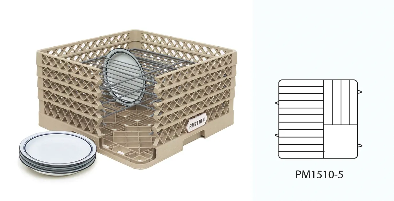 Fuel your restaurant's success with the Vollrath PM1510-5 Dishwasher Rack for Plates. This high-quality dishwasher rack is designed to meet the demands of a busy commercial kitchen. With a capacity to hold up to 15 plates, ranging from 9" to 10-3/4" in diameter and up to 1-3/8" in height, this rack is perfect for efficiently washing and storing plates. The rack features five extenders with wire dividers, ensuring that each plate is securely held in place during the washing process. Made from durable co-polymer plastic, this rack is built to withstand the rigors of a commercial dishwasher. The snap-fit extenders and stackable design make it easy to maximize space in your dishwasher and storage area. Additionally, this dishwasher rack is NSF certified, guaranteeing its safety and quality. Upgrade your restaurant's dishwashing process with the Vollrath PM1510-5 Dishwasher Rack for Plates.