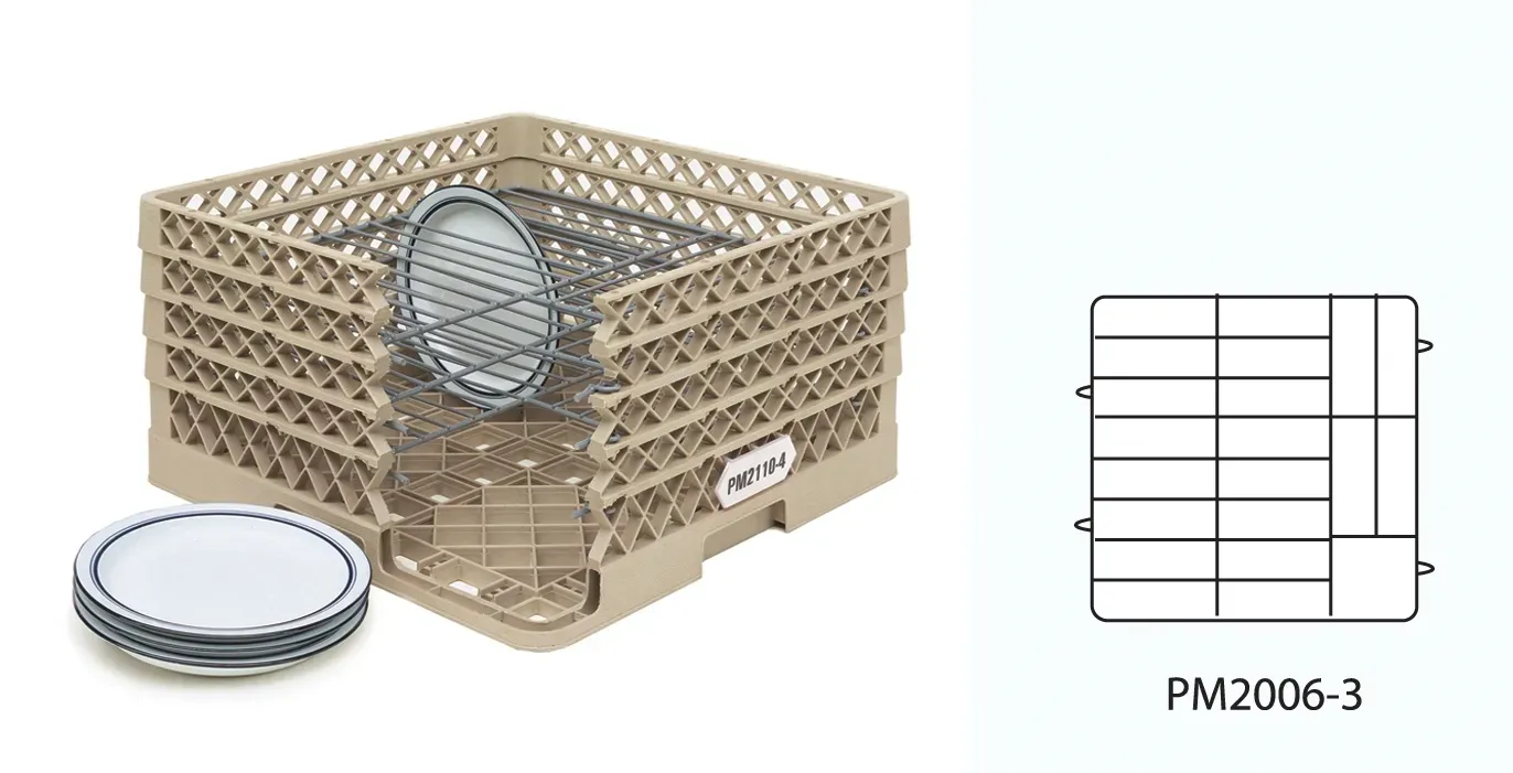 Elevate your culinary experience with the Vollrath PM2006-3 Dishwasher Rack for Plates. This high-quality dishwasher rack is designed to meet the demands of a busy commercial restaurant. With a capacity to hold up to 20 plates, ranging from 4-3/4" to 6-1/2" in diameter and up to 2" in height, this rack is perfect for efficiently washing and storing plates. The rack features three extenders with wire dividers, allowing for easy organization and preventing damage during the washing process. Made from durable co-polymer plastic, this rack is built to withstand the rigors of a commercial kitchen. The snap-fit extenders and stackable design make it convenient to use and store. Additionally, this dishwasher rack is NSF certified, ensuring it meets the highest standards of sanitation and safety. Upgrade your dishwashing process with the Vollrath PM2006-3 Dishwasher Rack for Plates.