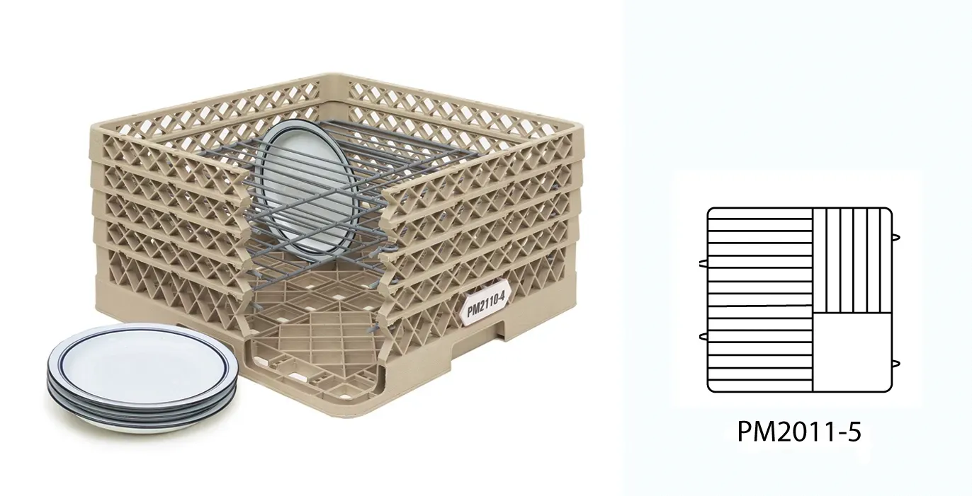 The Traex Plate Crate warewashing system is the perfect crate for washing, storing and transporting your china. The interior features a wire grid that holds items at the ideal angle for cleaning, maximizes capacity and speeds drying time. And the wire is powder-painted to prevent corrosion and create a cushion that prevents chipping and breakage. The rack and extenders are made of double-wall copolymer plastic to ensure chemical, impact and heat resistance up to 180°F for 30 minutes. The open profile allows top-to-bottom and side-to-side washing, as well as air circulation for superior cleaning and drying. Handles on all four sides of the rack ensure easy gripping and transportation, while reinforced index strips allow for four-way tracking.