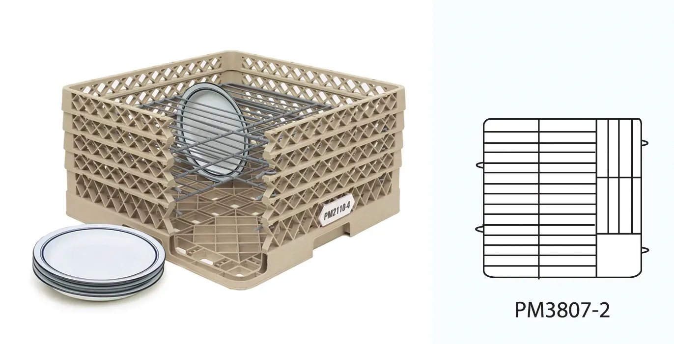 Elevate your cuisine with the Vollrath PM3807-2 Dishwasher Rack for Plates. This high-quality rack is designed to meet the demands of a busy commercial restaurant kitchen. With a capacity to hold up to 38 plates, ranging from 5" to 6-1/8" in diameter and up to 1" in height, this rack is perfect for efficiently washing and storing your plates. The rack features two extenders with wire dividers, allowing you to securely stack and organize your plates. Made from durable co-polymer plastic, this rack is built to withstand the rigors of a commercial kitchen and is NSF certified for food safety. The snap-fit extenders and stackable design make it easy to maximize your storage space. Available in various colors, this dishwasher rack is a must-have for any restaurant looking to streamline their dishwashing process. Trust Vollrath, a reputable vendor known for their high-quality products made in the USA.