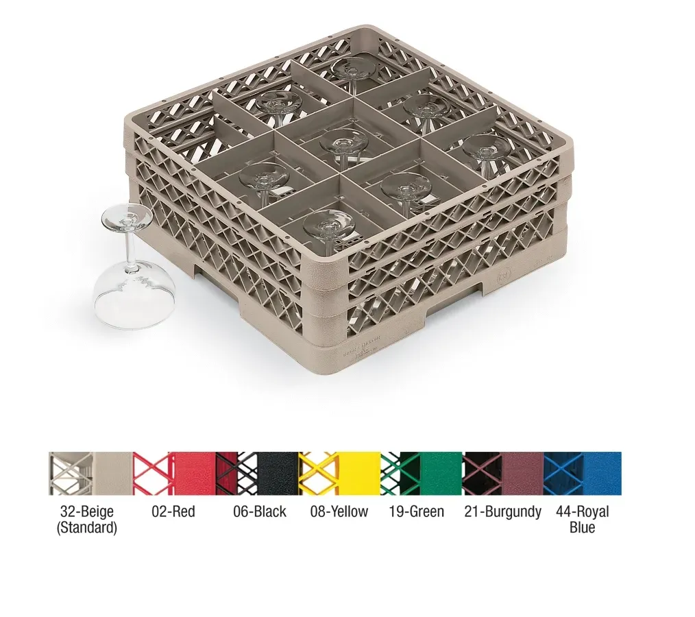 The strength of the Vollrath® Traex full-size glass rack is unmatched. Made out of copolymer plastic to ensure chemical, impact and heat resistance up to 180°F for 30 minutes, these full-size racks are impressively durable. The open profile allows top-to-bottom and side-to-side washing as well as air circulation for superior cleaning and drying, while the built-in rack dividers provide 100-percent vertical protection for your glassware. Compartments maximize space, reducing the number of loads required to wash all your glassware, and the three extenders provide ample room for tall glasses. Handles on all four sides of the rack ensure easy gripping and transportation, while reinforced index strips allow for four-way tracking.