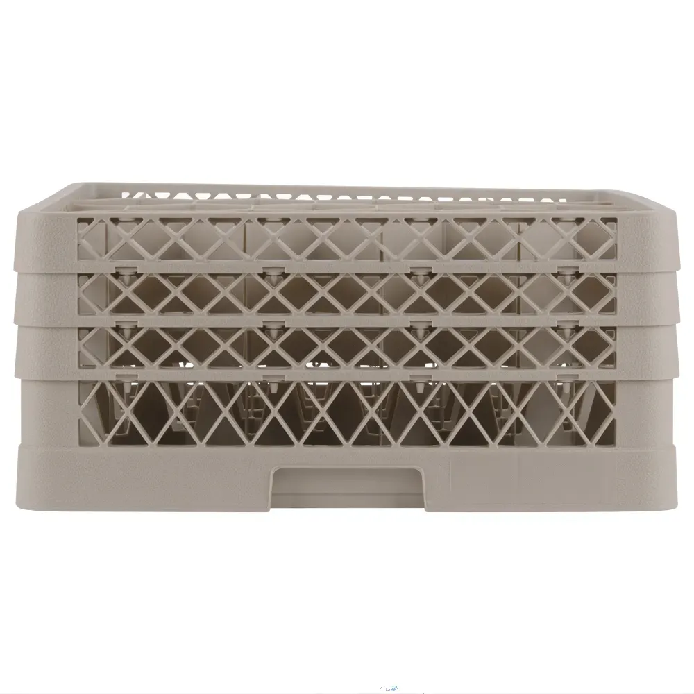 The capacity of the Traex Rack Max glass rack by Vollrath is unmatched. These racks feature a unique design that fits 17 to 30 percent more glassware than a traditional rack. This increased capacity helps speed the cleaning process and maximizes space, which saves valuable time, water, energy and more. Built-in rack dividers provide 100 percent vertical protection for your glassware, and the extenders create ample room for tall glasses. Made of copolymer plastic to ensure chemical, impact and heat resistance up to 180°F for 30 minutes, this rack is impressively durable. The open profile allows top-to-bottom and side-to-side washing, as well as air circulation for superior cleaning and drying. Handles on all four sides of the rack ensure easy gripping and transportation, while reinforced index strips allow for four-way tracking.