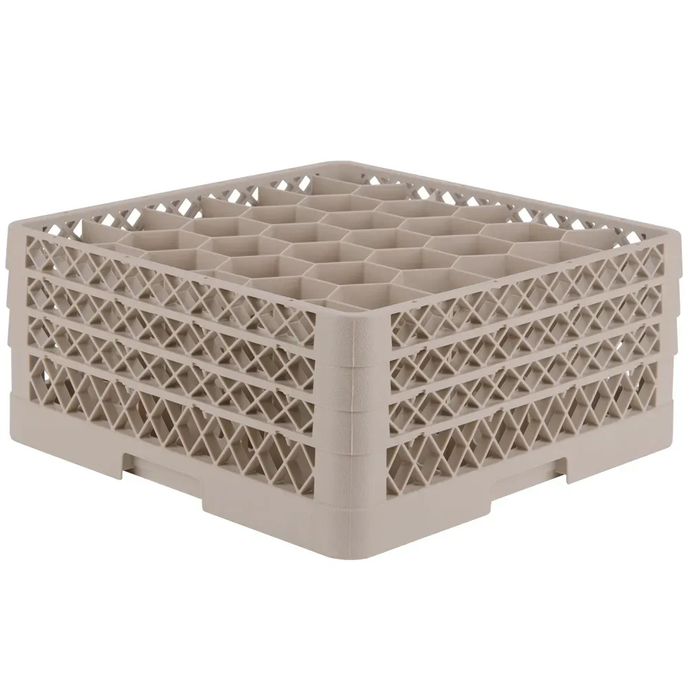 The capacity of the Traex Rack Max glass rack by Vollrath is unmatched. These racks feature a unique design that fits 17 to 30 percent more glassware than a traditional rack. This increased capacity helps speed the cleaning process and maximizes space, which saves valuable time, water, energy and more. Built-in rack dividers provide 100 percent vertical protection for your glassware, and the extenders create ample room for tall glasses. Made of copolymer plastic to ensure chemical, impact and heat resistance up to 180°F for 30 minutes, this rack is impressively durable. The open profile allows top-to-bottom and side-to-side washing, as well as air circulation for superior cleaning and drying. Handles on all four sides of the rack ensure easy gripping and transportation, while reinforced index strips allow for four-way tracking.
