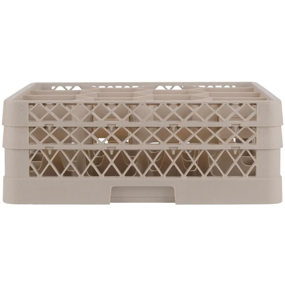 The capacity of the Traex Rack Max glass rack by Vollrath is unmatched. These racks feature a unique design that fits 17 to 30 percent more glassware than a traditional rack. This increased capacity helps speed the cleaning process and maximizes space, which saves valuable time, water, energy and more. Built-in rack dividers provide 100 percent vertical protection for your glassware, and the extenders create ample room for tall glasses. Made of copolymer plastic to ensure chemical, impact and heat resistance up to 180°F for 30 minutes, this rack is impressively durable. The open profile allows top-to-bottom and side-to-side washing, as well as air circulation for superior cleaning and drying. Handles on all four sides of the rack ensure easy gripping and transportation, while reinforced index strips allow for four-way tracking.