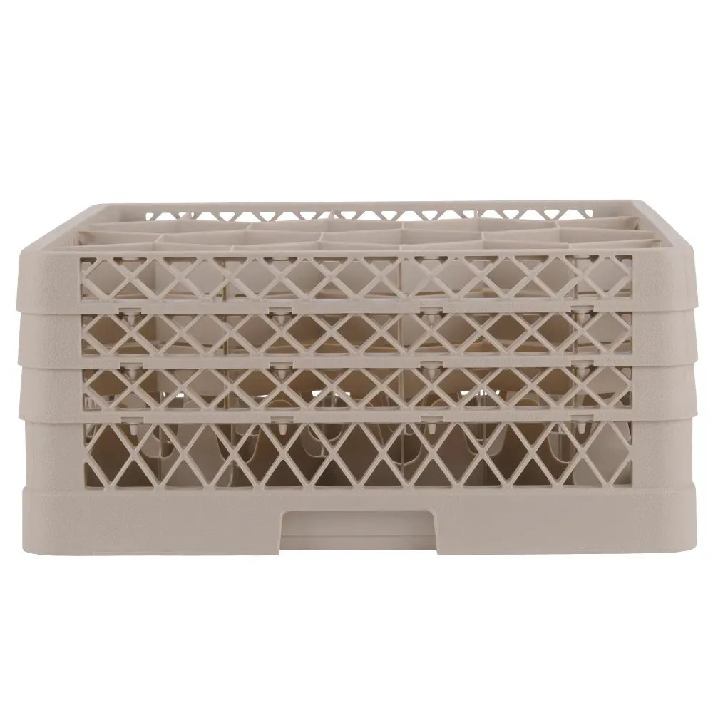 The capacity of the Traex Rack Max glass rack by Vollrath is unmatched. These racks feature a unique design that fits 17 to 30 percent more glassware than a traditional rack. This increased capacity helps speed the cleaning process and maximizes space, which saves valuable time, water, energy and more. Built-in rack dividers provide 100 percent vertical protection for your glassware, and the extenders create ample room for tall glasses. Made of copolymer plastic to ensure chemical, impact and heat resistance up to 180°F for 30 minutes, this rack is impressively durable. The open profile allows top-to-bottom and side-to-side washing, as well as air circulation for superior cleaning and drying. Handles on all four sides of the rack ensure easy gripping and transportation, while reinforced index strips allow for four-way tracking.