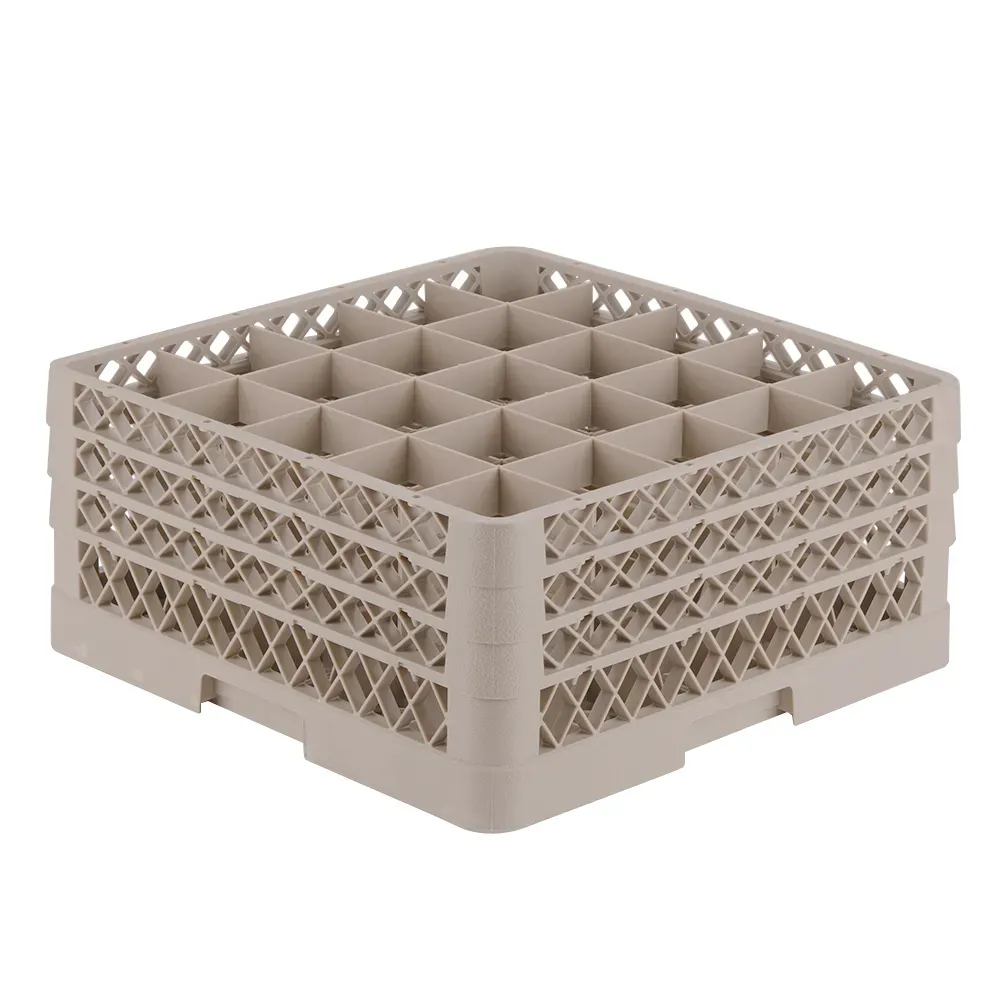 The strength of the Vollrath® Traex full-size glass rack is unmatched. Made out of copolymer plastic to ensure chemical, impact and heat resistance up to 180°F for 30 minutes, these full-size racks are impressively durable. The open profile allows top-to-bottom and side-to-side washing as well as air circulation for superior cleaning and drying, while the built-in rack dividers provide 100-percent vertical protection for your glassware. Compartments maximize space, reducing the number of loads required to wash all your glassware, and the three extenders provide ample room for tall glasses. Handles on all four sides of the rack ensure easy gripping and transportation, while reinforced index strips allow for four-way tracking.