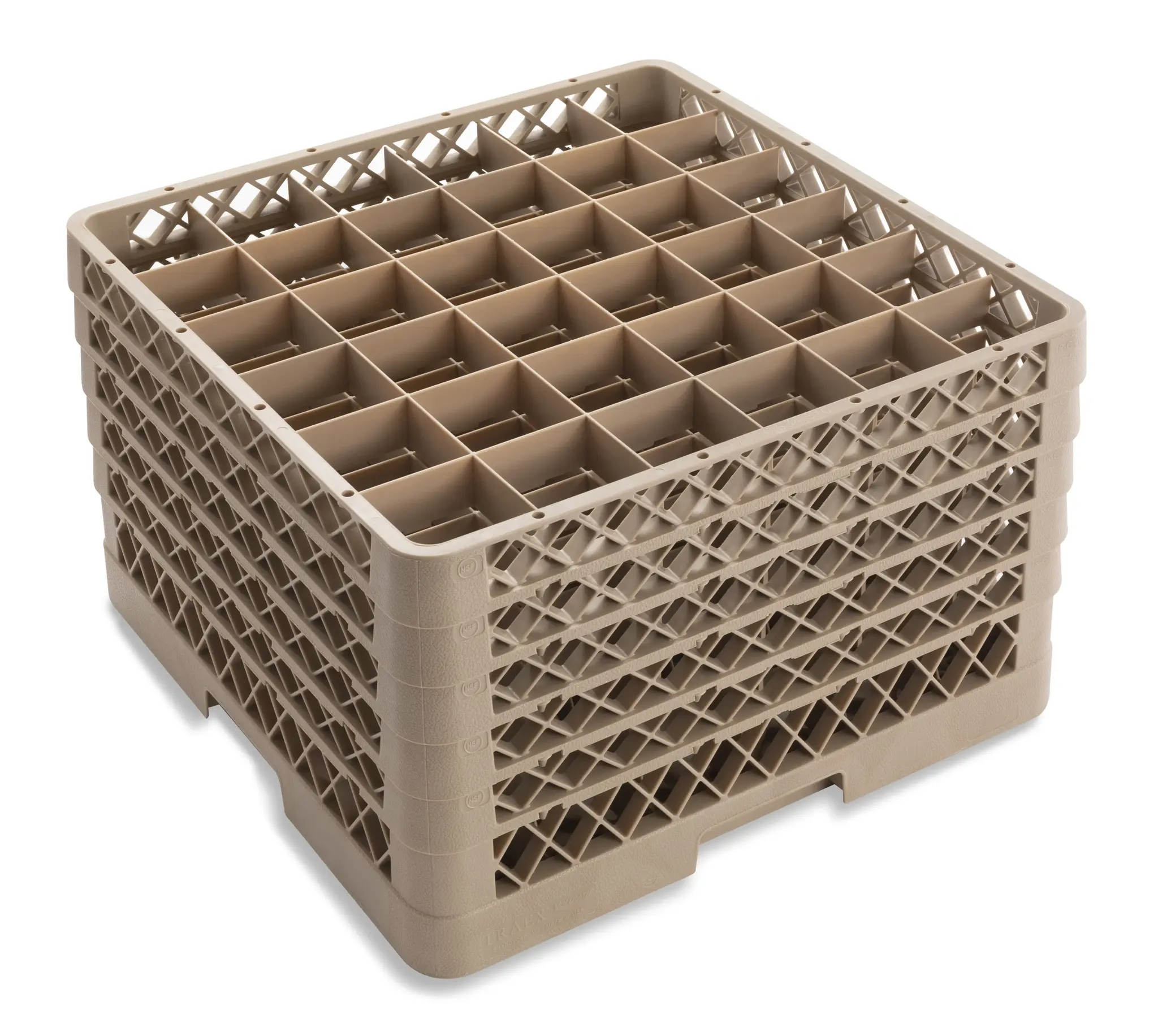 The strength of the Vollrath® Traex full-size glass rack is unmatched. Made out of copolymer plastic to ensure chemical, impact and heat resistance up to 180°F for 30 minutes, these full-size racks are impressively durable. The open profile allows top-to-bottom and side-to-side washing as well as air circulation for superior cleaning and drying, while the built-in rack dividers provide 100-percent vertical protection for your glassware. Compartments maximize space, reducing the number of loads required to wash all your glassware, and the three extenders provide ample room for tall glasses. Handles on all four sides of the rack ensure easy gripping and transportation, while reinforced index strips allow for four-way tracking.