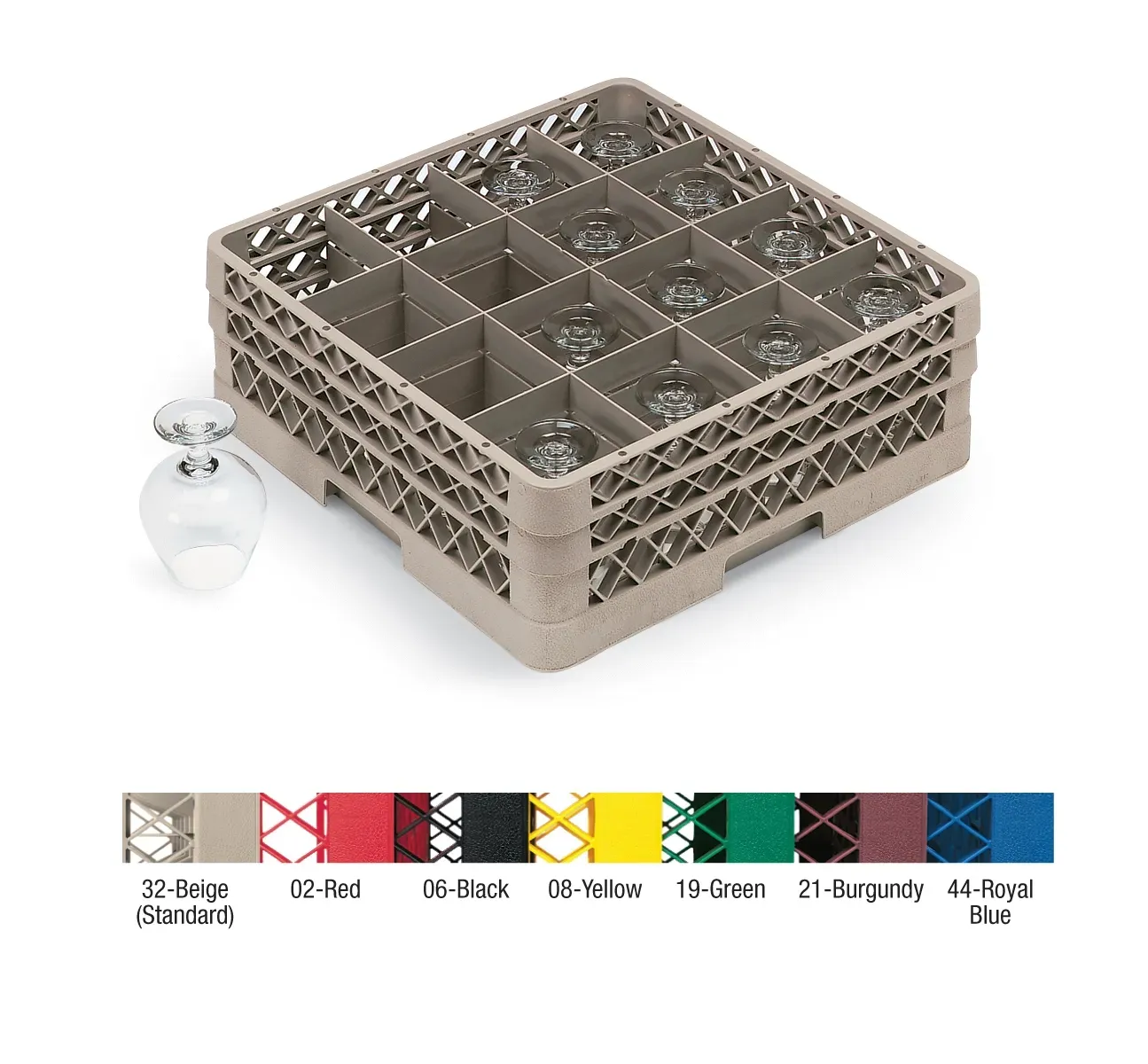 The strength of the Traex full-size glass rack by Vollrath is unmatched. Made of copolymer plastic to ensure chemical, impact and heat resistance up to 180°F for 30 minutes, this rack is impressively durable. The open profile allows top-to-bottom and side-to-side washing, as well as air circulation for superior cleaning and drying, while the built-in rack dividers provide 100 percent vertical protection for your glassware. Compartments maximize space, and the extenders create ample room for tall glasses. Handles on all four sides of the rack ensure easy gripping and transportation, while reinforced index strips allow for four-way tracking.