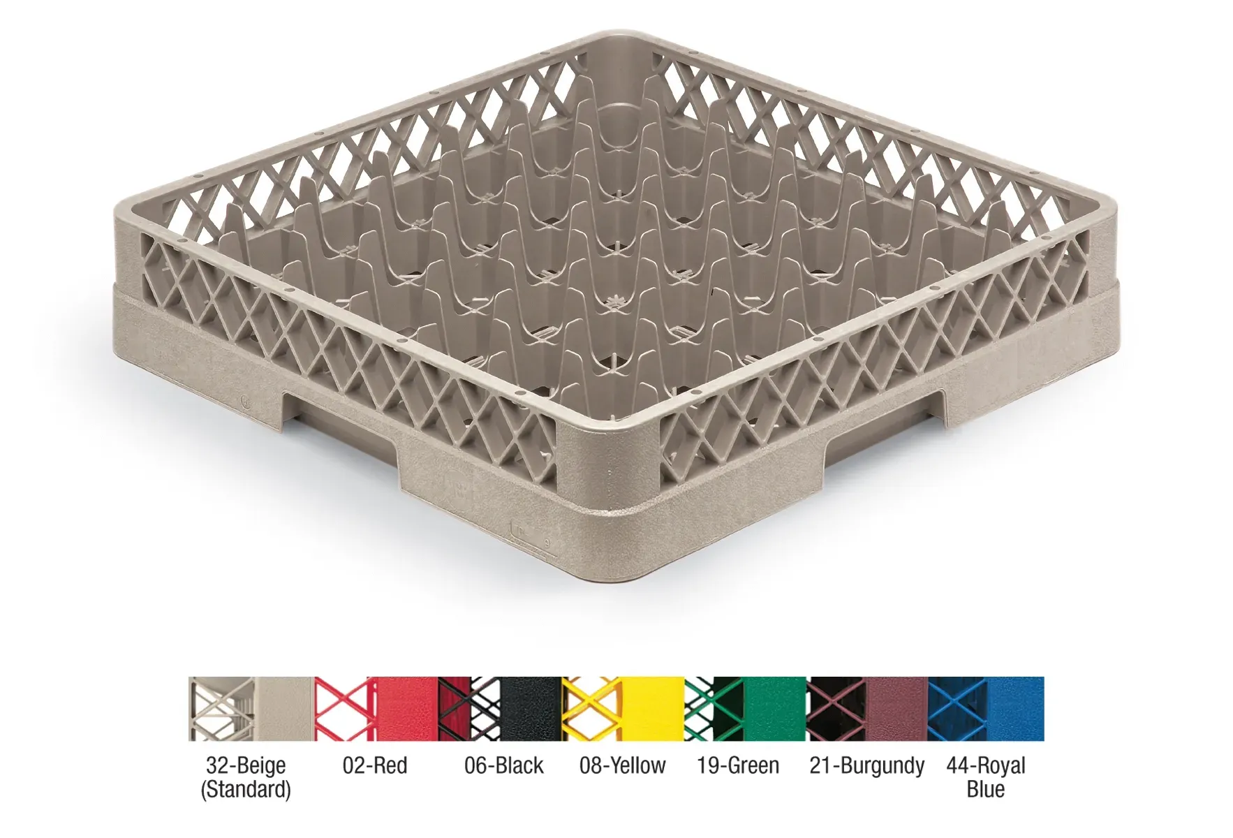 The strength of the Vollrath® Traex full-size glass rack is unmatched. Made out of copolymer plastic to ensure chemical, impact and heat resistance up to 180°F for 30 minutes, these full-size racks are impressively durable. The open profile allows top-to-bottom and side-to-side washing as well as air circulation for superior cleaning and drying, while the built-in rack dividers provide 100-percent vertical protection for your glassware. Compartments maximize space, reducing the number of loads required to wash all your glassware, and the three extenders provide ample room for tall glasses. Handles on all four sides of the rack ensure easy gripping and transportation, while reinforced index strips allow for four-way tracking.
