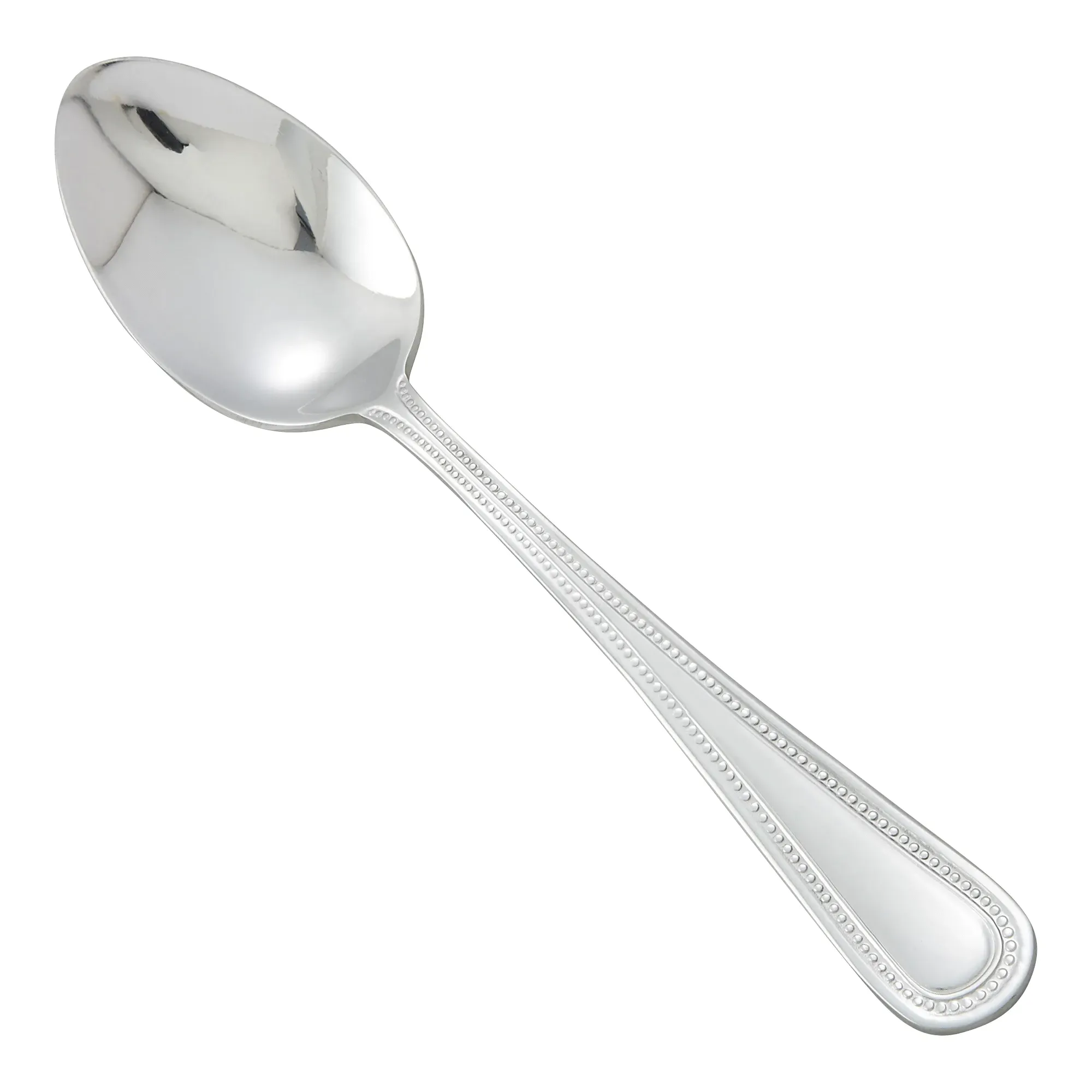 A kitchen essential using the Winco Teaspoon 6-14.180 stainless steel heavy weight mirror finish Dots, this product is designed to elevate your dining experience. Crafted from high-quality 18/0 stainless steel, this teaspoon boasts a heavy weight that ensures durability and a premium feel, making it perfect for any restaurant setting. The mirror finish of the Winco Teaspoon adds a touch of elegance and sophistication to your tableware, reflecting the high standards of your establishment. The Dots pattern on the handle not only enhances its aesthetic appeal but also provides a comfortable grip, ensuring ease of use for your guests. Measuring at a convenient length, this teaspoon is ideal for a variety of uses, from stirring coffee and tea to enjoying desserts and appetizers. Its robust construction ensures it can withstand the rigors of daily use in a busy restaurant environment, maintaining its shine and integrity over time. While the model number 0005-01 may not be immediately relevant to your guests, it signifies the meticulous design and quality assurance that Winco is known for. This teaspoon is not just a utensil; it’s a testament to your commitment to providing a superior dining experience. Incorporate the Winco Teaspoon 6-14.180 stainless steel heavy weight mirror finish Dots into your table setting and let its quality and design speak for themselves. Your guests will appreciate the attention to detail and the enhanced dining experience it provides.