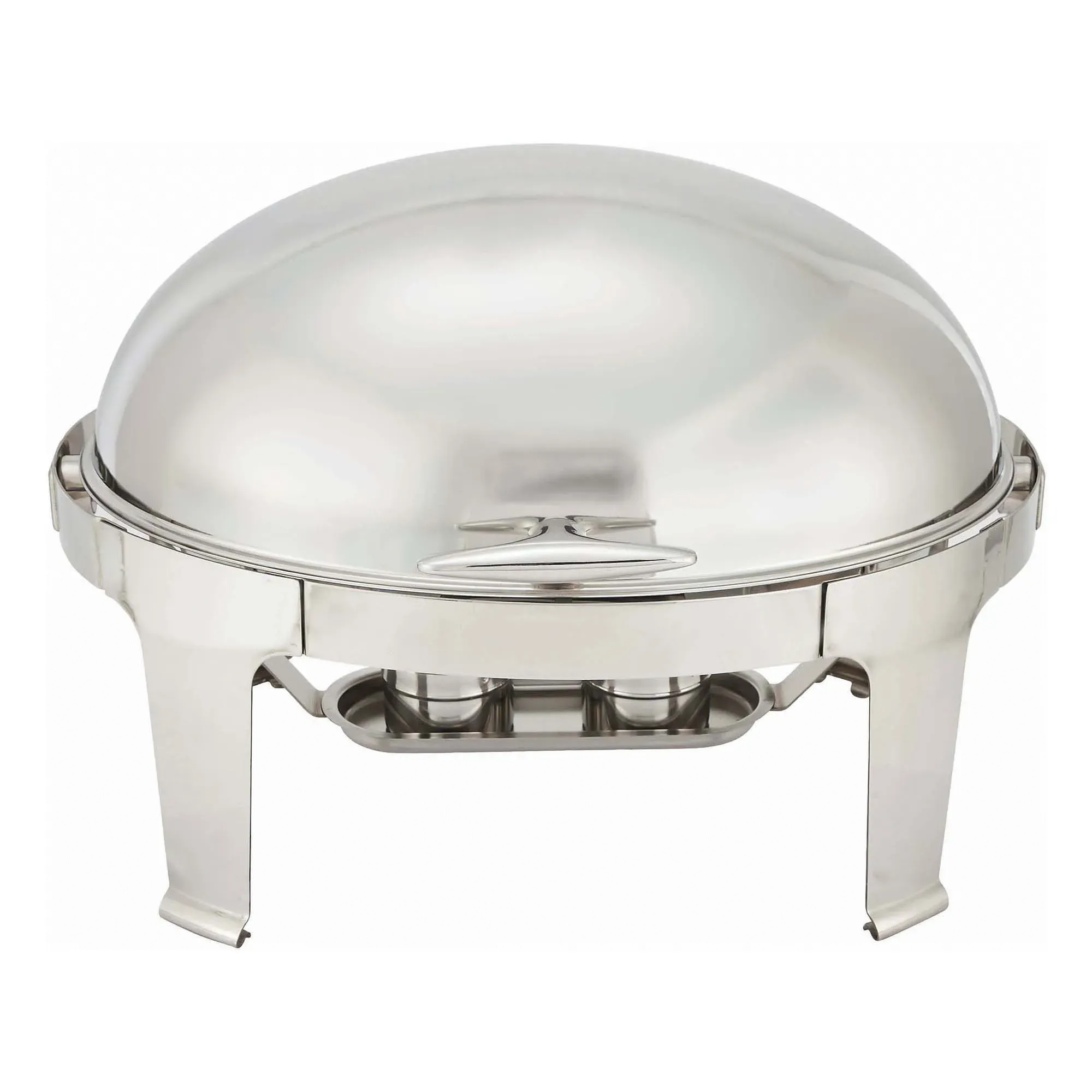 Enhance the kitchen's capabilities with the Madison Chafer 8 qt. Oval Stainless Steel Frame Roll Top. This elegant chafer, brought to you by Winco, is designed to meet the high standards of any restaurant setting. With its 8-quart capacity, it is perfect for serving large quantities of food, making it an essential addition to your buffet or catering service. The Madison Chafer features a durable stainless steel frame that ensures longevity and a sleek, professional appearance. Its roll-top lid offers a 180-degree full opening and a 90-degree intermediate opening, providing versatile serving options and easy access for guests and staff alike. This design not only enhances functionality but also adds a touch of sophistication to your presentation. Included with the Madison Chafer are a food pan, water pan, and fuel holders, making it a complete solution for keeping your dishes warm and ready to serve. The mirror finish of the chafer adds a polished look, reflecting the quality and care you put into your culinary creations. Whether you are hosting a large event or a small gathering, the Madison Chafer 8 qt. Oval Stainless Steel Frame Roll Top is the perfect choice for maintaining the ideal temperature of your food while presenting it in style. Its robust construction and thoughtful design make it a reliable and attractive addition to any restaurant's serving equipment. Invest in the Madison Chafer today and elevate your dining experience with a product that combines functionality, durability, and elegance.