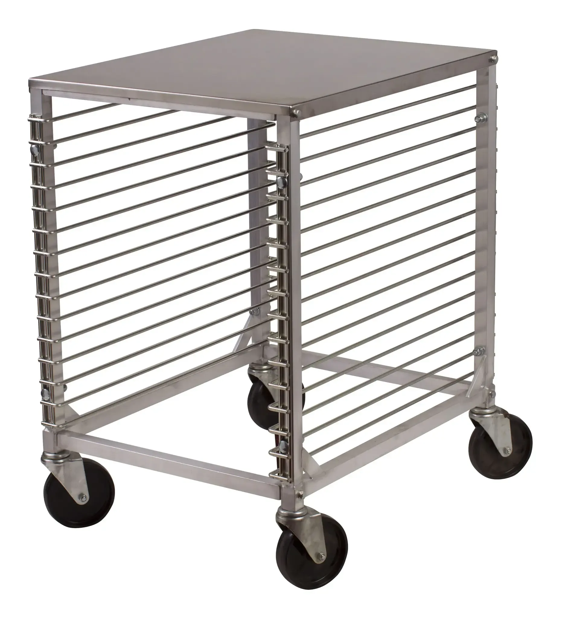 Constructed from durable 14 gauge 6063 aluminum, the Winco Sheet Pan Rack boasts a robust 400 lb. capacity, ensuring it can handle even the heaviest loads with ease. The rack's mobility is enhanced by its 5 swivel casters, allowing for smooth and effortless movement throughout your kitchen, whether you're transporting ingredients, baked goods, or prepared dishes.