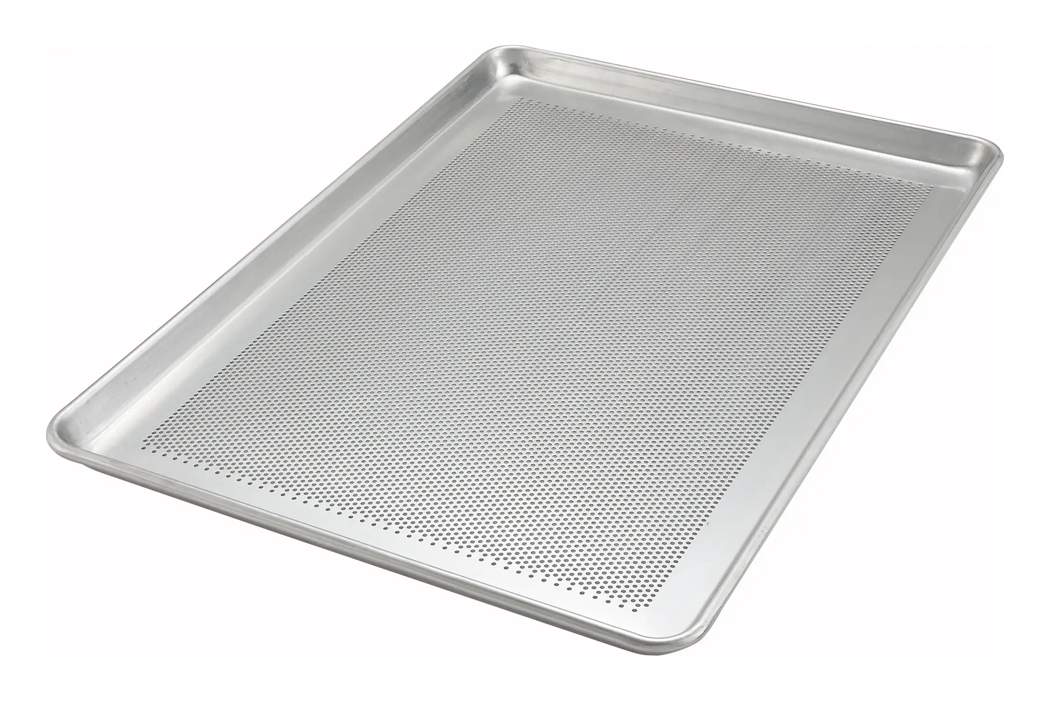 Ideal for professional settings, the Winco Sheet Pan is a must-have for any restaurant kitchen. This full-size sheet pan, measuring 18 x 26 inches, is designed to meet the rigorous demands of a bustling culinary environment. Crafted from 18 gauge 3003 aluminum, it offers exceptional durability and heat conductivity, ensuring even baking and roasting every time. The perforated design, featuring 18 dia. holes, allows for superior air circulation, which is perfect for achieving crispy textures on baked goods and roasted items. This feature is particularly beneficial for baking bread, pastries, and other items that require a well-ventilated cooking surface. The closed bead edge adds to the pan's robustness, preventing warping and ensuring it maintains its shape even under high temperatures. The Winco Sheet Pan, model ALXP-1826P, is not just about performance; it’s also about convenience. Its full-size dimensions make it versatile for a variety of cooking tasks, from baking large batches of cookies to roasting vegetables and meats. The high-quality aluminum construction ensures it is lightweight yet sturdy, making it easy to handle and clean. In a professional kitchen, where efficiency and reliability are paramount, the Winco Sheet Pan stands out as an essential tool. Its thoughtful design and durable materials make it a valuable addition to any restaurant's cookware collection. Whether you’re a pastry chef or a line cook, this sheet pan will help you deliver consistent, high-quality results every time.