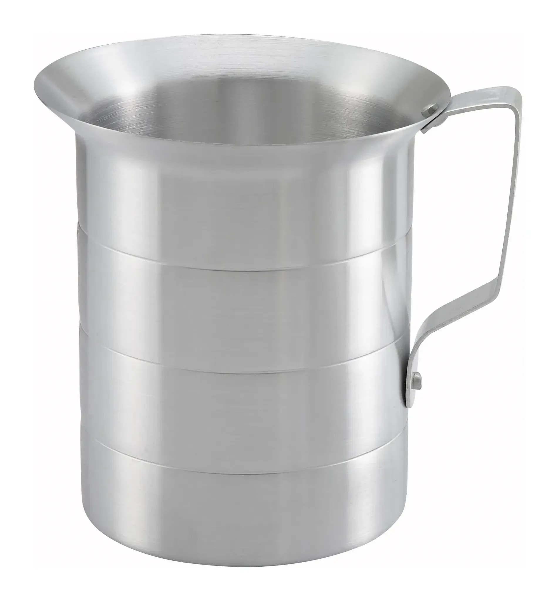 Make a statement in the kitchen with the Winco Measuring Cup. Designed with a 2-quart capacity, this aluminum measuring cup is an essential tool for any restaurant setting. Its robust construction ensures durability and longevity, making it a reliable choice for busy kitchens. The Winco Measuring Cup is crafted from high-quality aluminum, providing a lightweight yet sturdy option for precise measurements. Its 2-quart capacity is perfect for handling larger quantities, whether you're measuring out ingredients for a large batch of soup or preparing a marinade for a crowd. The clear markings on the side of the cup ensure accuracy, helping you maintain consistency in your recipes. In a fast-paced restaurant environment, efficiency is key. The Winco Measuring Cup's ergonomic design allows for easy handling and pouring, reducing the risk of spills and waste. Its smooth surface is easy to clean, ensuring that it remains hygienic and ready for use at all times. While the model number AM-2 may not be the first thing you consider, it signifies the quality and reliability that Winco products are known for. This measuring cup is a testament to Winco's commitment to providing top-notch kitchen tools that meet the demands of professional chefs. Elevate your kitchen's efficiency and precision with the Winco Measuring Cup. Its 2-quart capacity and durable aluminum construction make it an indispensable addition to any restaurant's culinary arsenal.