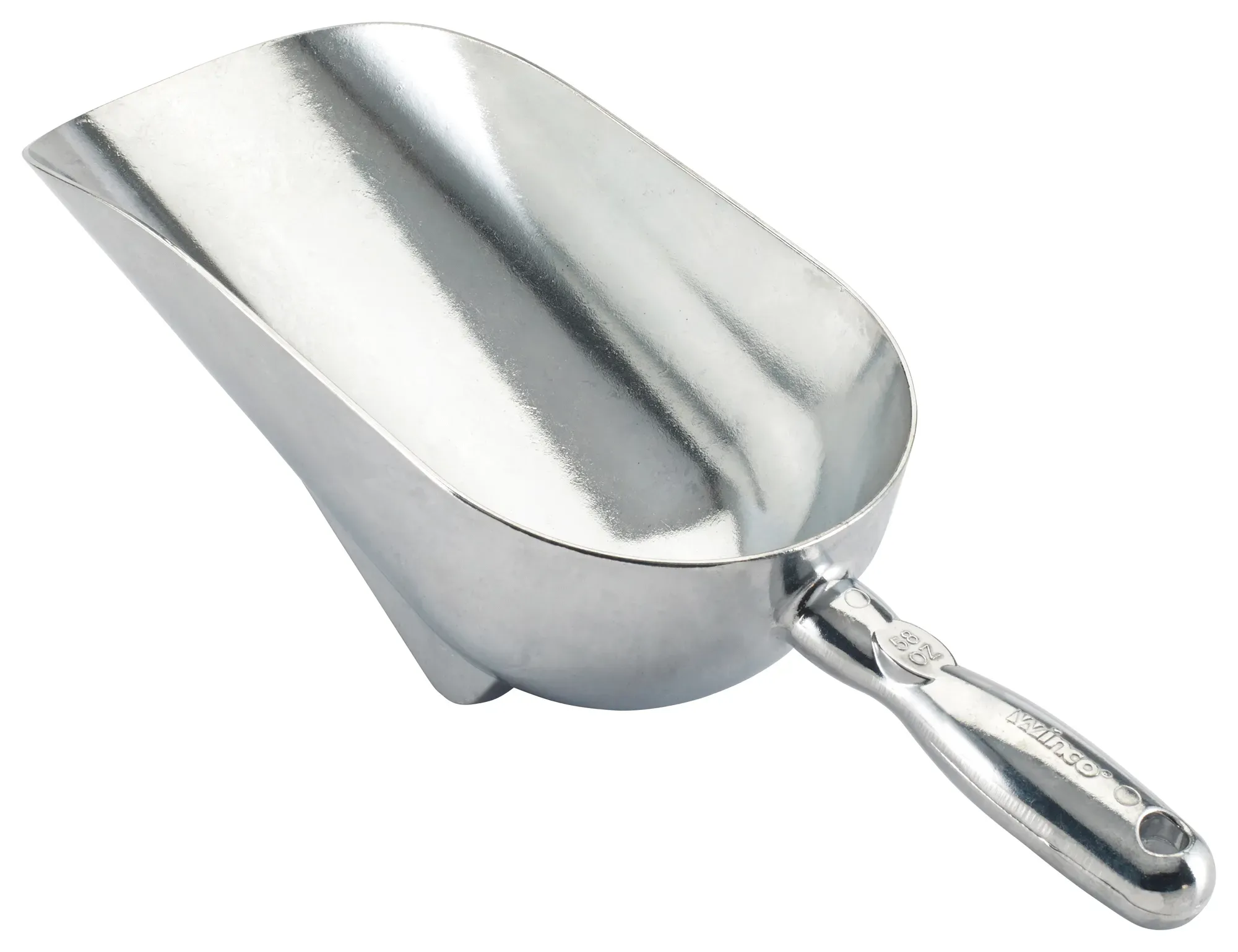 The 58 oz. capacity is perfect for handling large quantities of ingredients, whether you're scooping ice, flour, sugar, or other bulk items. This makes it an invaluable asset for both back-of-house operations and front-of-house service, where efficiency and speed are paramount.
