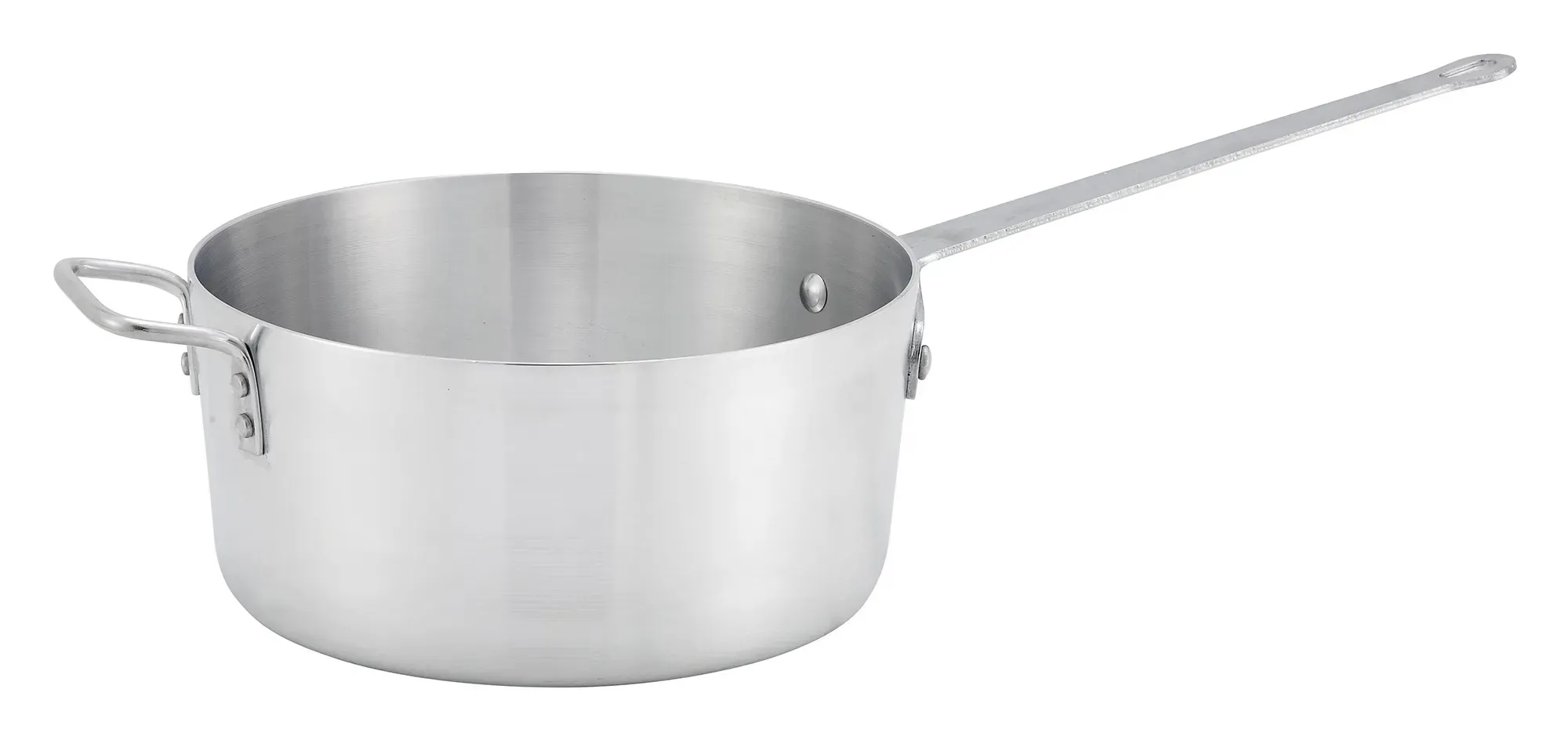 Crafted from 3.0mm thick 3003 heavyweight aluminum, the Winco Sauce Pan ensures even heat distribution, reducing the risk of hot spots and ensuring consistent cooking results. The natural finish not only adds to its aesthetic appeal but also makes it easy to clean and maintain, a crucial feature in a busy restaurant environment.