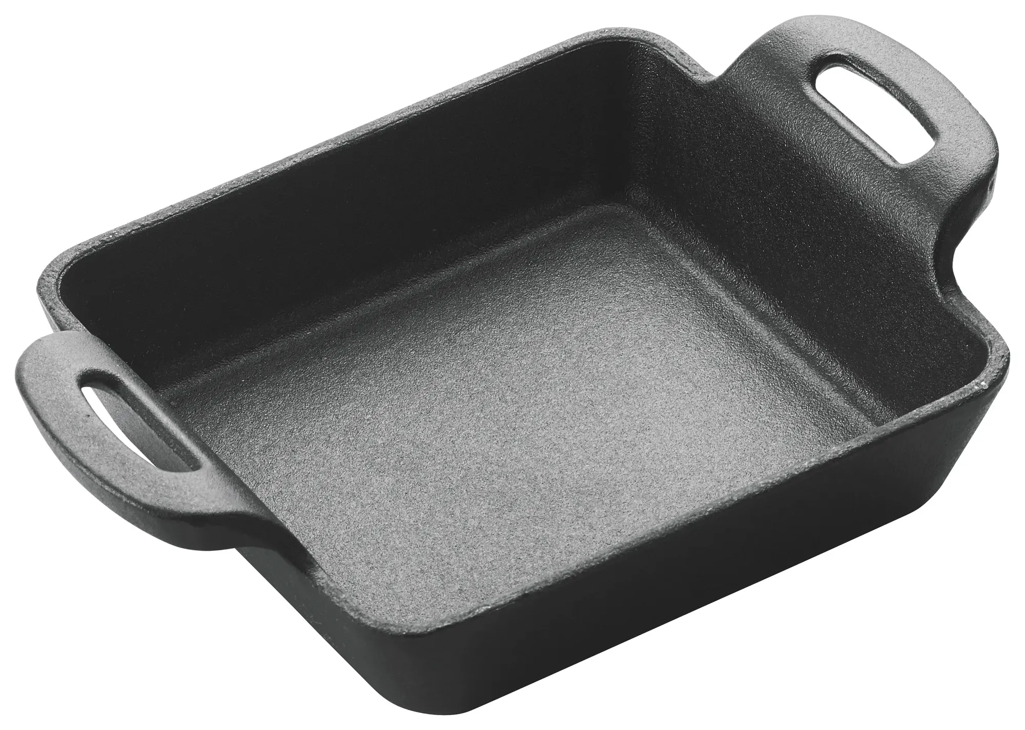 Crafted with a durable enameled finish, the FireIron Mini Cast Iron Server ensures even heat distribution and retention, keeping your culinary creations warm from kitchen to table. Its compact 10 oz capacity and 4-7/8 inch square shape make it a stylish and practical choice for a variety of dishes, from sizzling fajitas to decadent molten lava cakes.