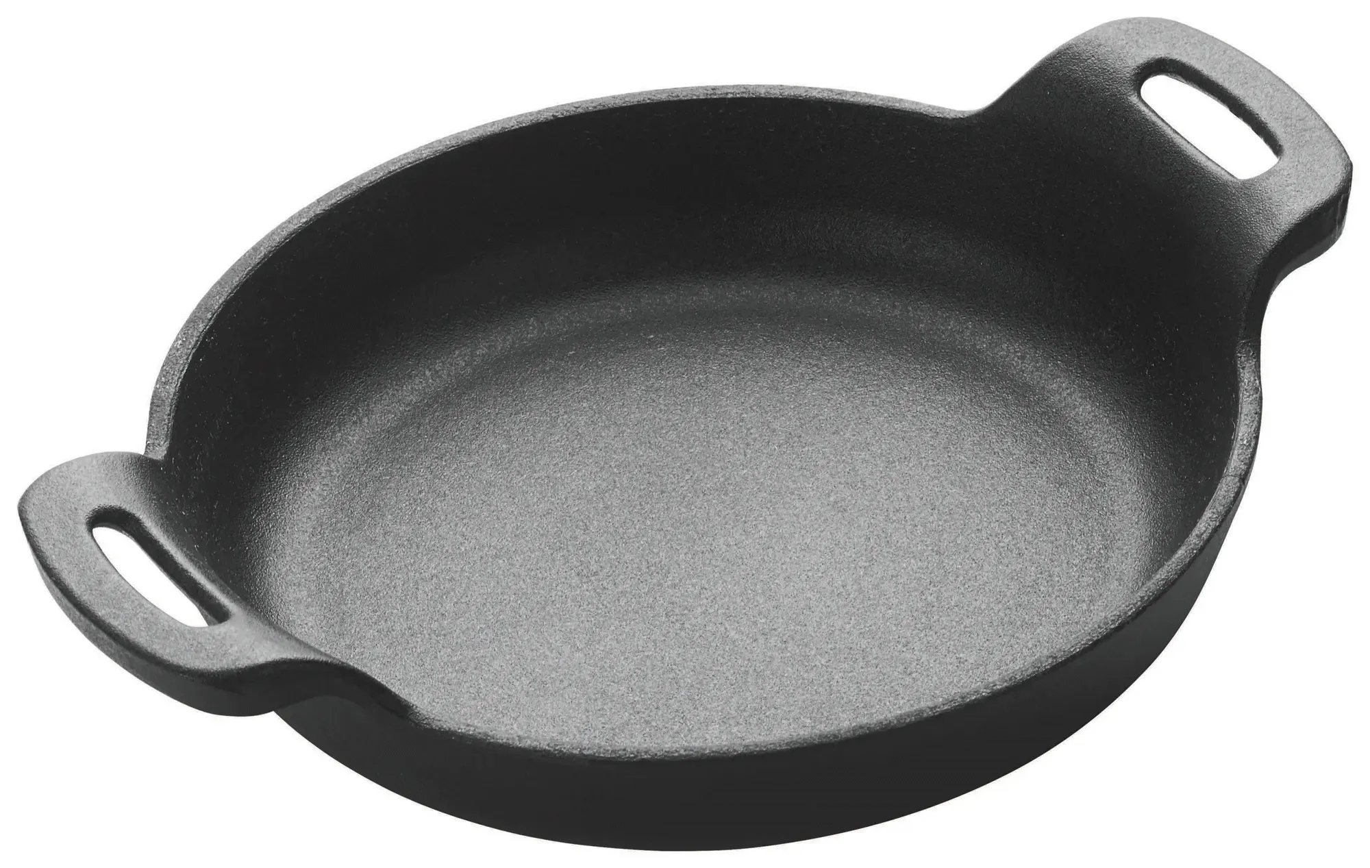 Crafted from high-quality cast iron, this server boasts exceptional heat retention, keeping your culinary creations warm from kitchen to table. The matte black enamel finish not only adds a touch of modern elegance but also provides a non-stick surface, making it easy to clean and maintain. Its round shape and sleek design make it a versatile addition to any table setting, seamlessly blending with various restaurant decors.