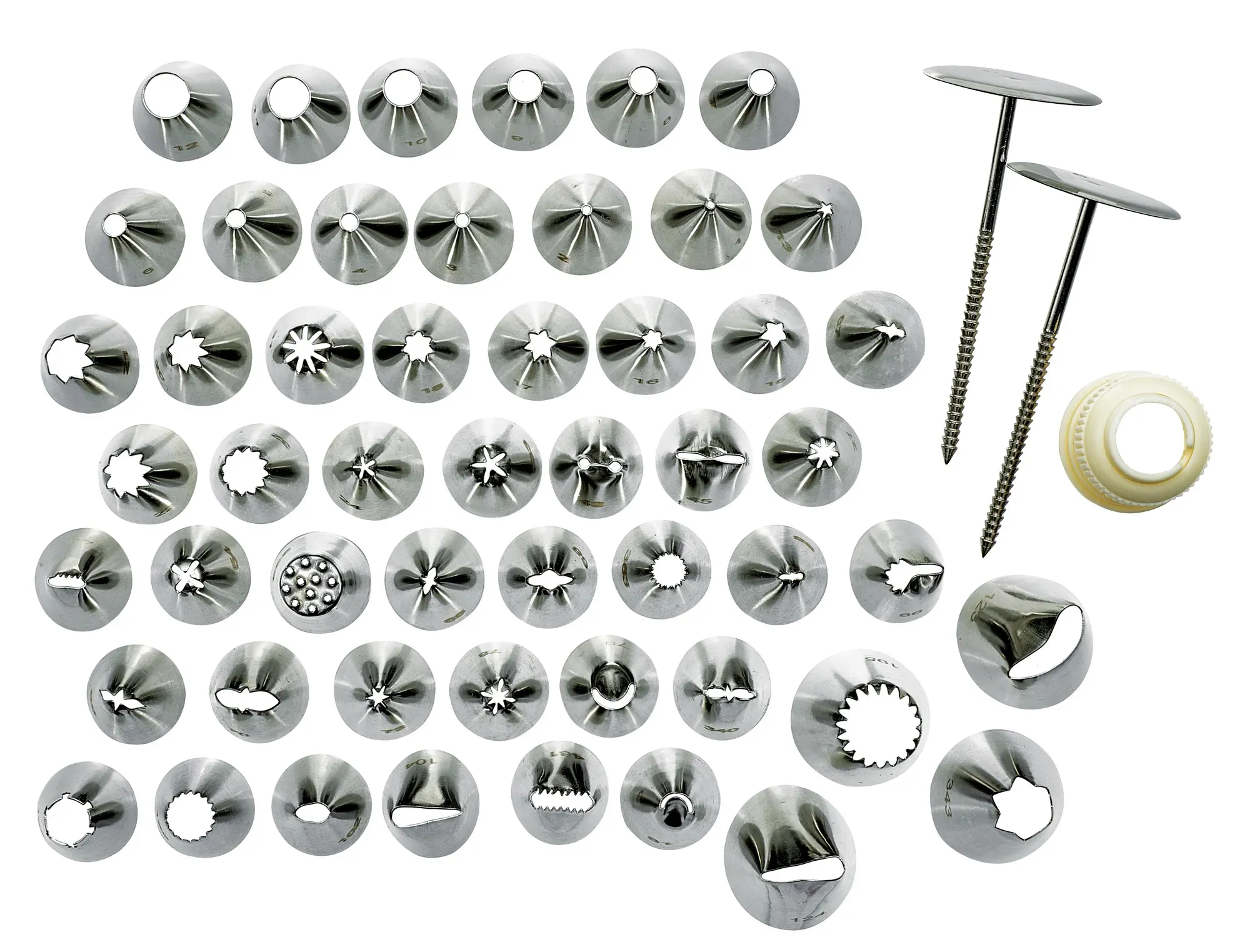 The Winco Cake Decorating Set includes 52 stainless steel tips, offering a wide variety of options for intricate designs and detailed decorations. Whether you're crafting delicate flowers, elegant borders, or intricate patterns, this set provides the versatility and precision required for any decorating task. The stainless steel construction ensures durability and longevity, making it a reliable addition to your kitchen arsenal.