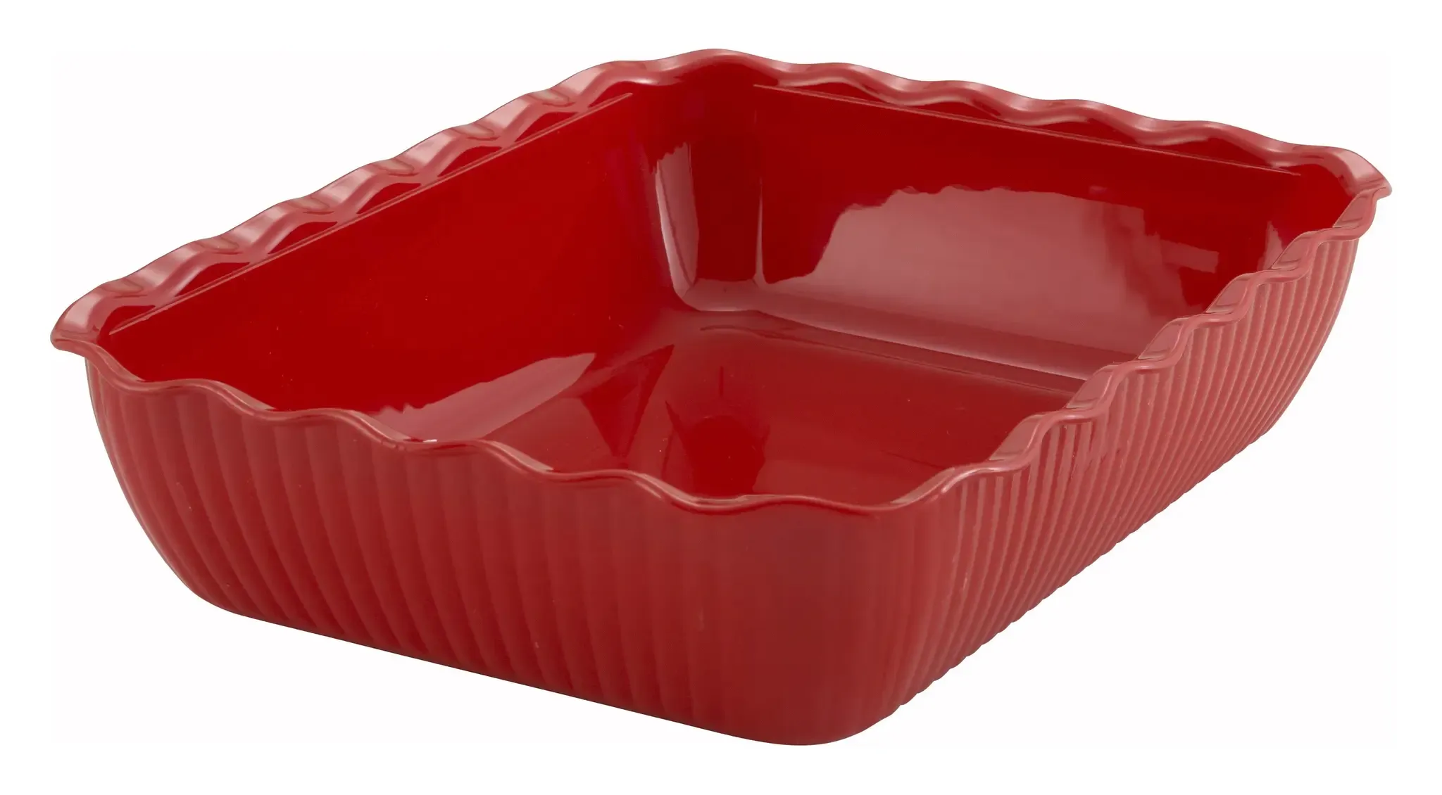 Experience the difference in quality with the Winco Deli Crock. Designed specifically for restaurant settings, this rectangular fluted crock measures 13 x 10 x 3 inches, making it the perfect size for a variety of deli items. The vibrant red color not only adds a pop of color to your display but also enhances the presentation of your culinary creations.