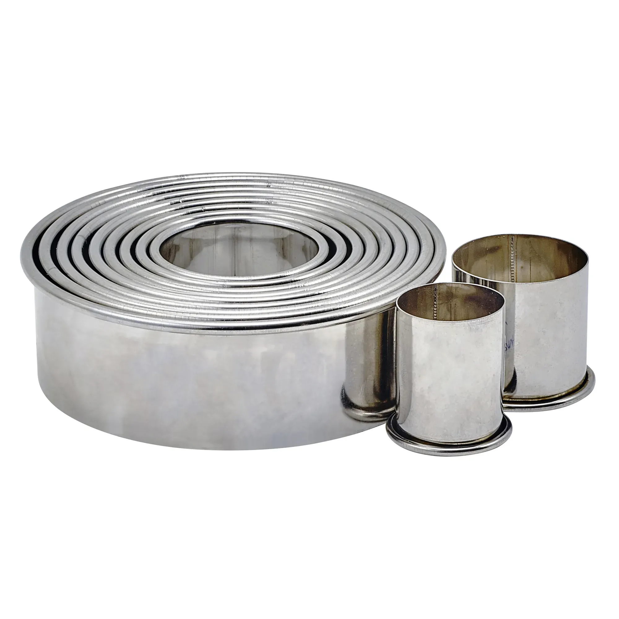 The Winco Cookie Cutter Set includes 11 round and plain cutters, ranging from 1 inch to 3-1/2 inches in diameter, with a height of 1 inch. This variety allows for versatile use, whether you're crafting perfectly uniform cookies, biscuits, or even intricate pastry designs. The precision of these cutters ensures clean, sharp edges every time, enhancing the presentation of your baked goods.