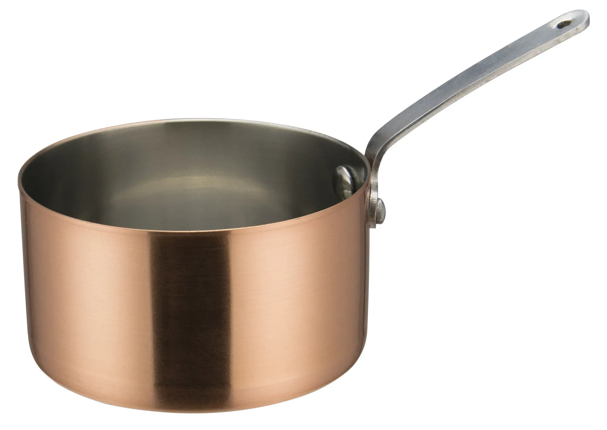 Engineered for excellence using top-tier materials, the Winco Mini Sauce Pan is an essential addition to any professional kitchen. With a diameter of 4-3/8 inches and a height of 2-3/8 inches, this copper-plated pan is designed to deliver superior performance and aesthetic appeal.
