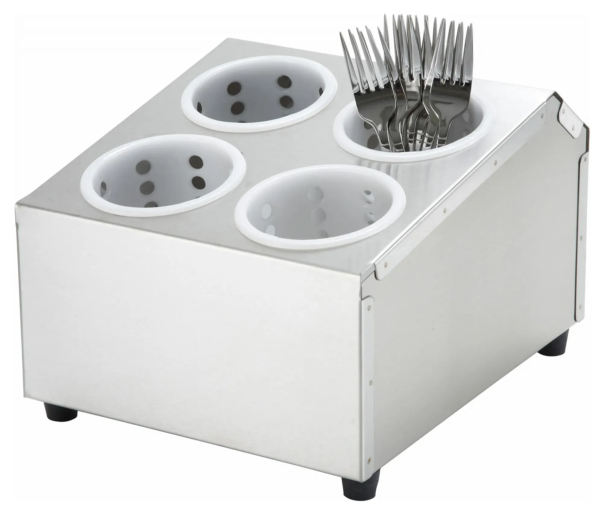 The sleek and modern design of this flatware holder not only enhances the aesthetic appeal of your kitchen but also offers practical functionality. The two-tier structure allows for easy access and organization, ensuring that your staff can quickly grab the utensils they need during peak hours. The four-hole configuration provides ample space for separating different types of flatware, keeping your kitchen orderly and efficient.