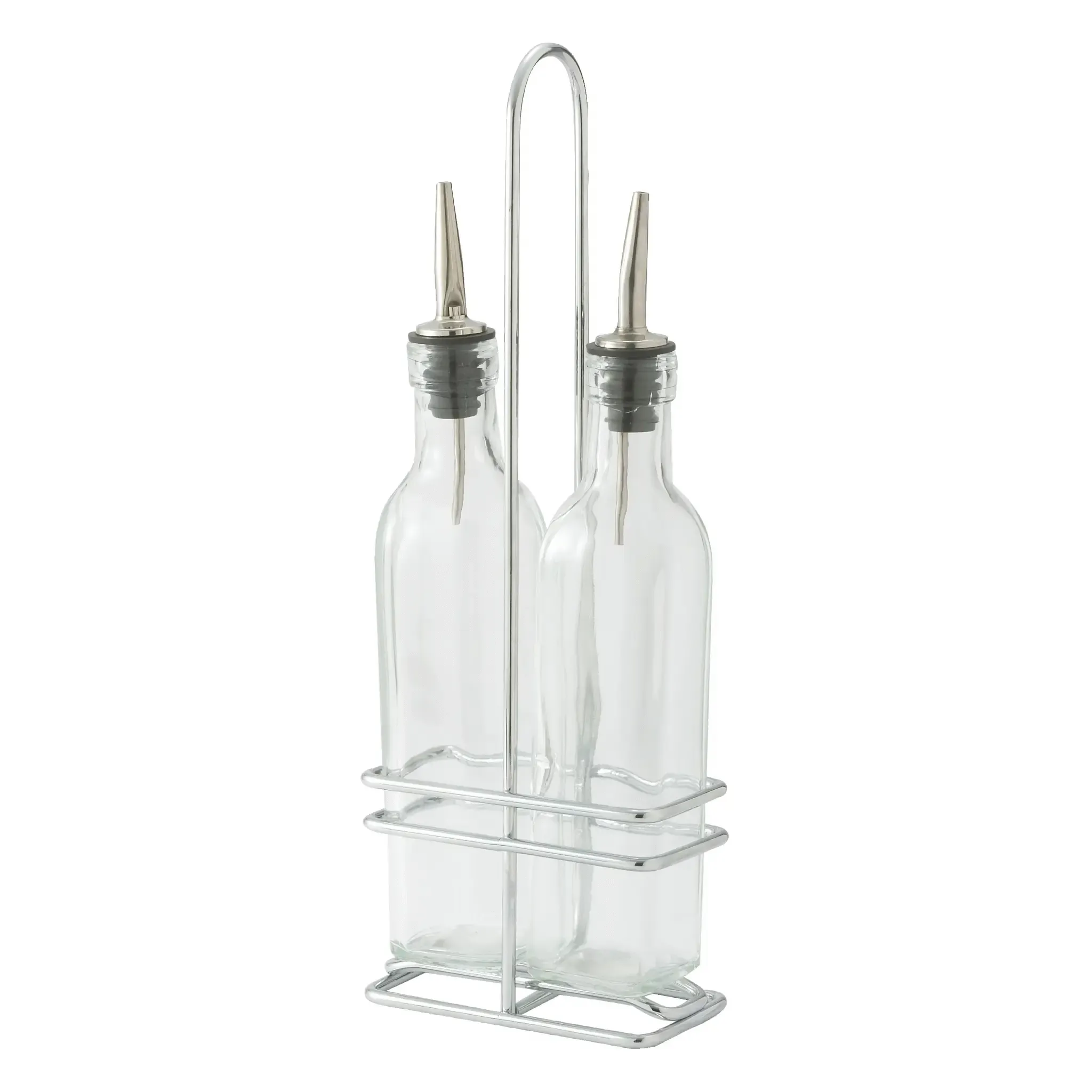 The bottles are perfectly complemented by a chrome-plated rack, model WH-16, which not only adds a touch of sophistication to your table setting but also keeps the cruets organized and easily accessible. The sleek design of the rack ensures that it fits seamlessly into any restaurant decor, from modern to traditional.
