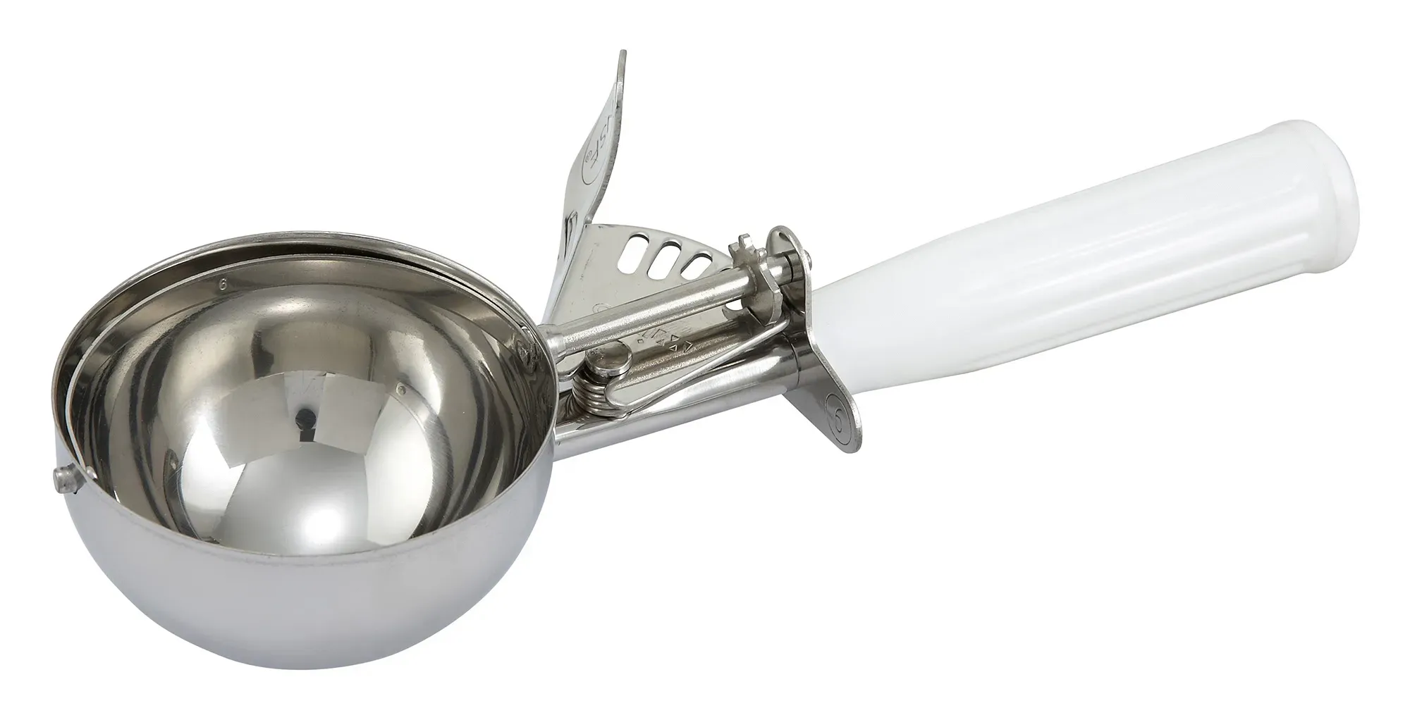 Redefine convenience in the kitchen with the Winco Ice Cream Disher. This essential tool is designed to streamline your dessert service, ensuring every scoop is consistent and perfectly portioned. The Winco Ice Cream Disher boasts a 4-23 oz. capacity, making it versatile enough to handle a variety of ice cream servings, from small tastes to generous portions. Crafted with a 3-inch diameter scoop, this disher is ideal for creating uniform scoops that enhance the presentation of your desserts. The size 6 plastic handle is ergonomically designed to provide a comfortable grip, reducing hand fatigue during extended use. The handle's white color not only adds a clean, professional look but also helps in easy identification among your kitchen tools. Constructed from 188 stainless steel, the Winco Ice Cream Disher is built to withstand the rigors of a busy restaurant environment. This durable material ensures longevity and resistance to corrosion, maintaining its pristine condition even with frequent use. Additionally, the disher is NSF certified, guaranteeing that it meets strict public health and safety standards, which is crucial for any food service establishment. Whether you're serving up classic vanilla, rich chocolate, or any other delightful flavor, the Winco Ice Cream Disher ensures each scoop is as perfect as the last. Elevate your dessert offerings and enhance your kitchen's efficiency with this indispensable tool.