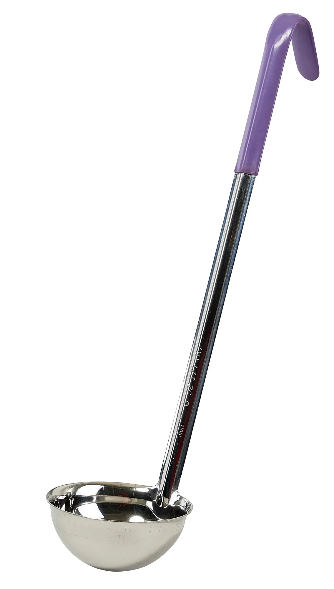 Streamline food preparation with the Winco Color-Coded Ladle. Designed specifically for restaurant settings, this 6 oz. ladle is an essential tool for any professional kitchen. The one-piece stainless steel construction ensures durability and longevity, making it a reliable choice for daily use. The standout feature of this ladle is its color-coded design. The purple handle not only adds a pop of color but also serves a crucial function in maintaining an allergen-free environment. By using color-coded utensils, you can easily prevent cross-contamination and ensure the safety of your guests with food allergies. This makes the Winco Color-Coded Ladle an indispensable tool for any establishment that prioritizes food safety and hygiene. With a 15-1/2 inch handle, this ladle provides ample reach, allowing you to serve soups, sauces, and other liquids with ease and precision. The ergonomic design ensures a comfortable grip, reducing hand fatigue during extended use. While the model number LDC-6P may not be the first thing you consider, it signifies the specific design and functionality tailored for professional kitchens. This model is crafted to meet the high standards of the foodservice industry, ensuring that it performs consistently under demanding conditions. Incorporate the Winco Color-Coded Ladle into your kitchen arsenal and experience the perfect blend of functionality, safety, and durability. Whether you’re serving up a hearty soup or a delicate sauce, this ladle is designed to meet your needs with precision and ease.