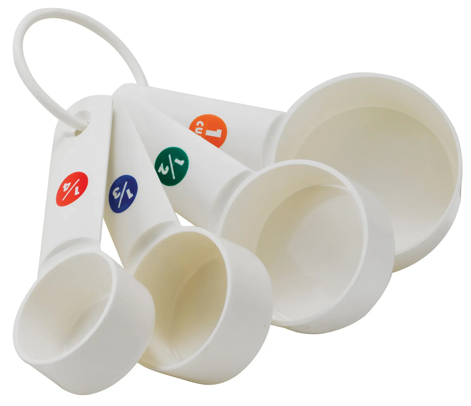Bring versatility and style to the kitchen with the Winco Measuring Cup Set. This 4-piece set, model MCPP-4, is an essential addition to any restaurant's kitchen, offering precise measurements for all your culinary needs. The set includes four measuring cups in the following sizes: 1/4 cup, 1/3 cup, 1/2 cup, and 1 cup, ensuring you have the right tool for every recipe. Crafted from BPA-free plastic, these measuring cups are not only safe for food use but also durable and easy to clean. The white color provides a clean, professional look that complements any kitchen decor. Each cup is designed for accuracy and ease of use, making it simple to measure both dry and liquid ingredients with confidence. The Winco Measuring Cup Set is perfect for busy restaurant environments where precision and efficiency are paramount. Whether you're measuring out ingredients for a large batch of soup or preparing a delicate dessert, these cups will help you achieve consistent results every time. In addition to their practical functionality, the cups are lightweight and stackable, saving valuable space in your kitchen. Their sturdy construction ensures they can withstand the rigors of daily use in a high-volume setting. Upgrade your kitchen tools with the Winco Measuring Cup Set and experience the perfect blend of style, durability, and precision. This set is a must-have for any professional kitchen, providing the reliability and performance you need to create culinary masterpieces.