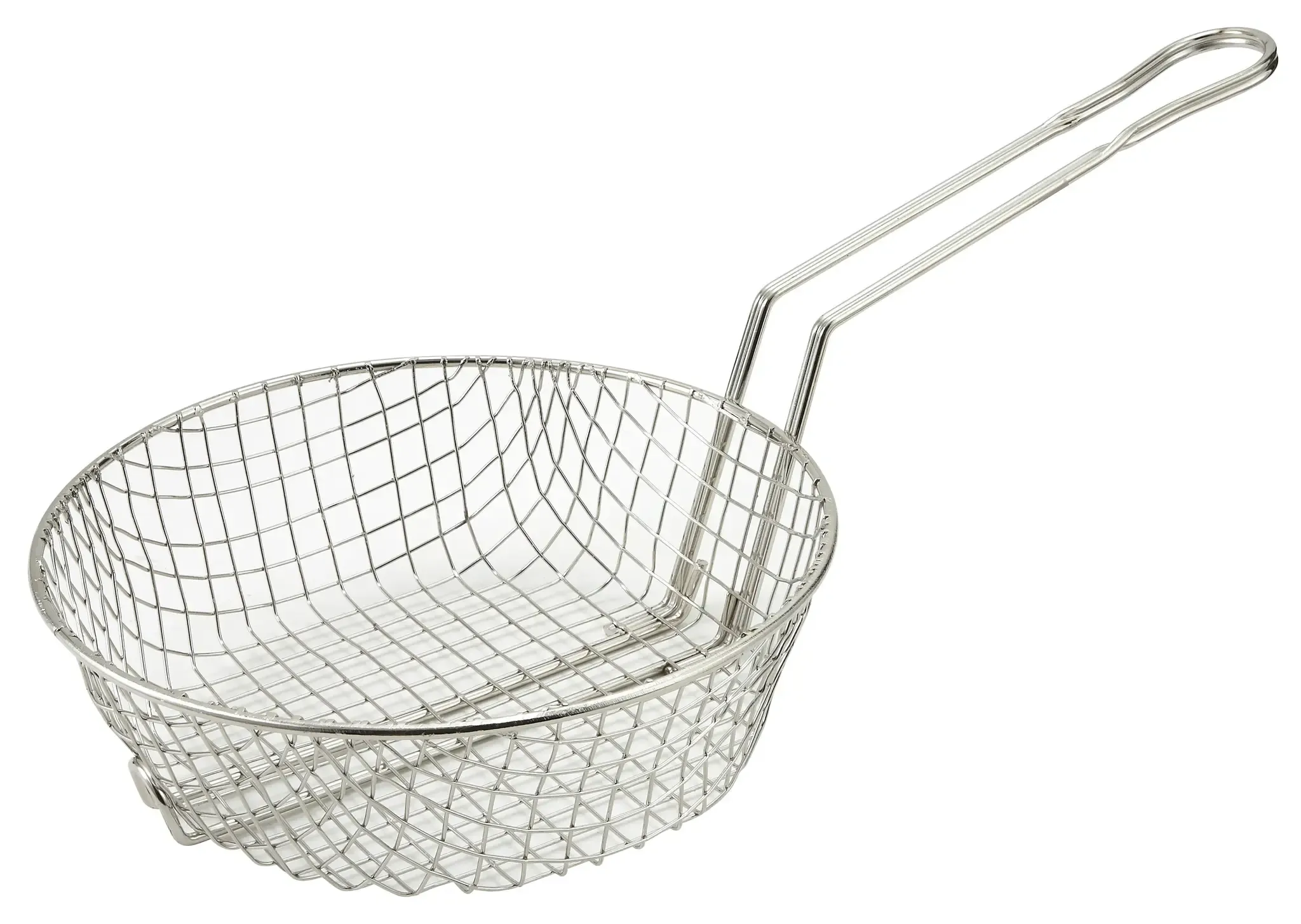 Streamline food preparation with the Winco Culinary Basket. Designed with an 8-inch diameter and 3-inch depth, this round coarse mesh basket is perfect for a variety of kitchen tasks in a bustling restaurant environment. Crafted from nickel-plated steel, the Winco Culinary Basket ensures durability and longevity, making it a reliable tool for chefs and kitchen staff. The coarse mesh design of the Winco Culinary Basket allows for efficient draining and straining, whether you're rinsing vegetables, draining pasta, or deep-frying. Its robust construction ensures it can handle the demands of a high-volume kitchen, while the nickel plating provides resistance to corrosion, maintaining its pristine condition even with frequent use. The 8-inch diameter offers ample space for handling larger quantities of food, making it ideal for both prep work and cooking. The 3-inch depth provides enough capacity to hold substantial portions without compromising on ease of use. This balance of size and depth makes the Winco Culinary Basket a versatile addition to any restaurant kitchen. While the model number MSB-08 signifies its specific design, the primary appeal lies in its practical specifications and the quality assurance that comes with the Winco name. Elevate your kitchen's efficiency and ensure consistent results with the Winco Culinary Basket, a must-have for any professional culinary setting.