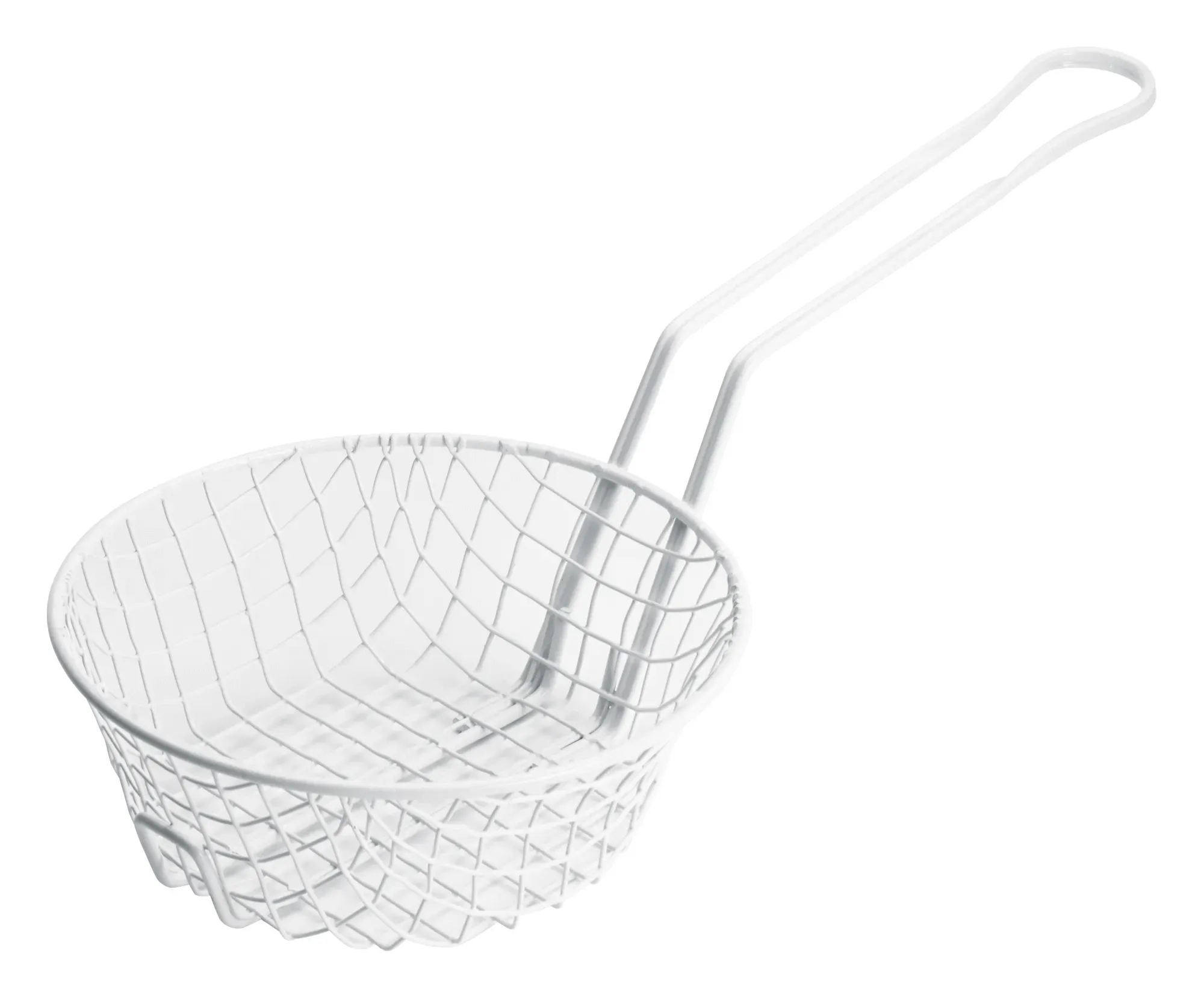 Create with confidence using the Winco Breading Basket. Designed specifically for the fast-paced environment of a restaurant kitchen, this essential tool boasts an 8-inch diameter and a 3-inch height, making it perfect for breading a variety of items from chicken to vegetables. The coarse mesh design ensures that excess breading falls away easily, resulting in a perfectly coated product every time. Crafted from durable steel wire, the Winco Breading Basket is built to withstand the rigors of daily use. Its non-stick white plastic coating not only enhances its durability but also makes for easy cleaning, ensuring that your kitchen remains efficient and hygienic. The coating also prevents food from sticking, which is crucial for maintaining the quality and appearance of your dishes. The Winco Breading Basket (Model: MSBW-08) is an indispensable tool for any restaurant aiming to deliver consistently high-quality breaded items. Its practical design and robust construction make it a reliable choice for chefs who demand the best from their kitchen equipment. Incorporate the Winco Breading Basket into your kitchen setup and experience the difference it makes in your food preparation process. With its thoughtful design and superior functionality, this breading basket is sure to become a staple in your culinary arsenal.