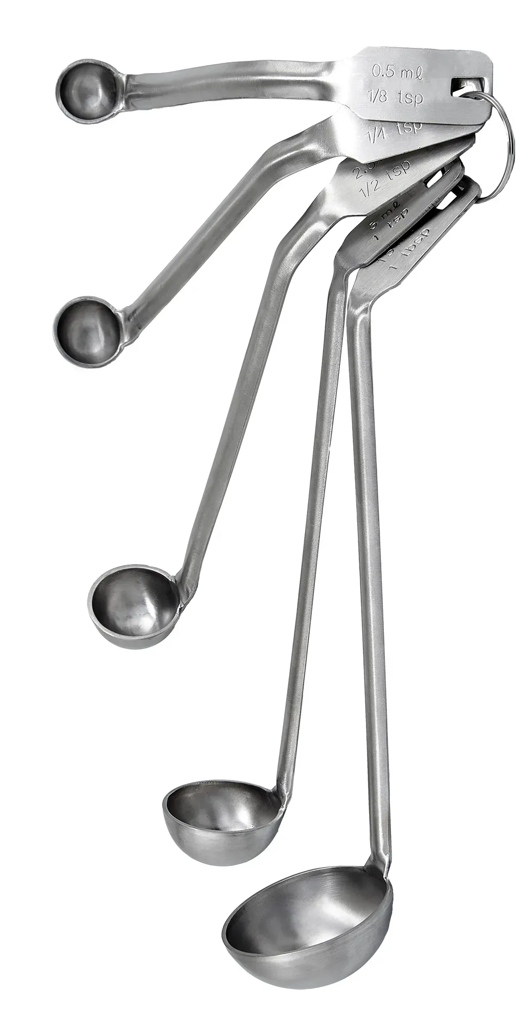 The Winco Mini Ladle Set includes five different sizes: 18 tsp., 14 tsp., 12 tsp., 1 tsp., and 1 tbsp. This variety ensures you have the perfect tool for every task, whether you're measuring ingredients for a recipe, serving sauces, or portioning out dressings. Each ladle is meticulously designed to provide accurate measurements, helping to maintain consistency and quality in every dish you prepare.