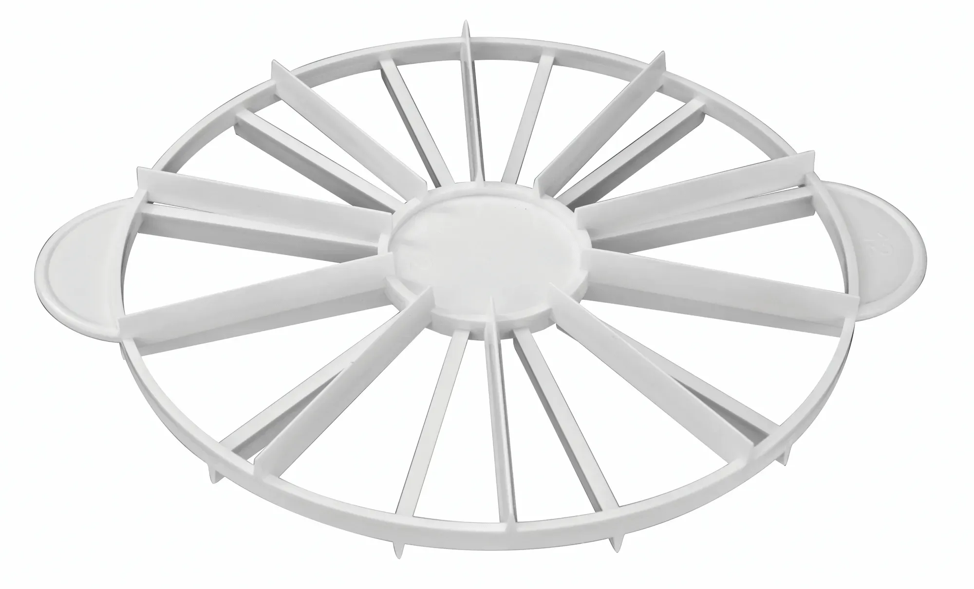 Simplify daily tasks with the Winco Cake Marker, a versatile tool designed to enhance efficiency in your restaurant's kitchen. This Cake Marker, with a 10-inch diameter, is double-sided, allowing you to effortlessly mark cakes into either 10 or 12 slices. Made from BPA-free polypropylene, it ensures food safety while providing durability for long-term use.