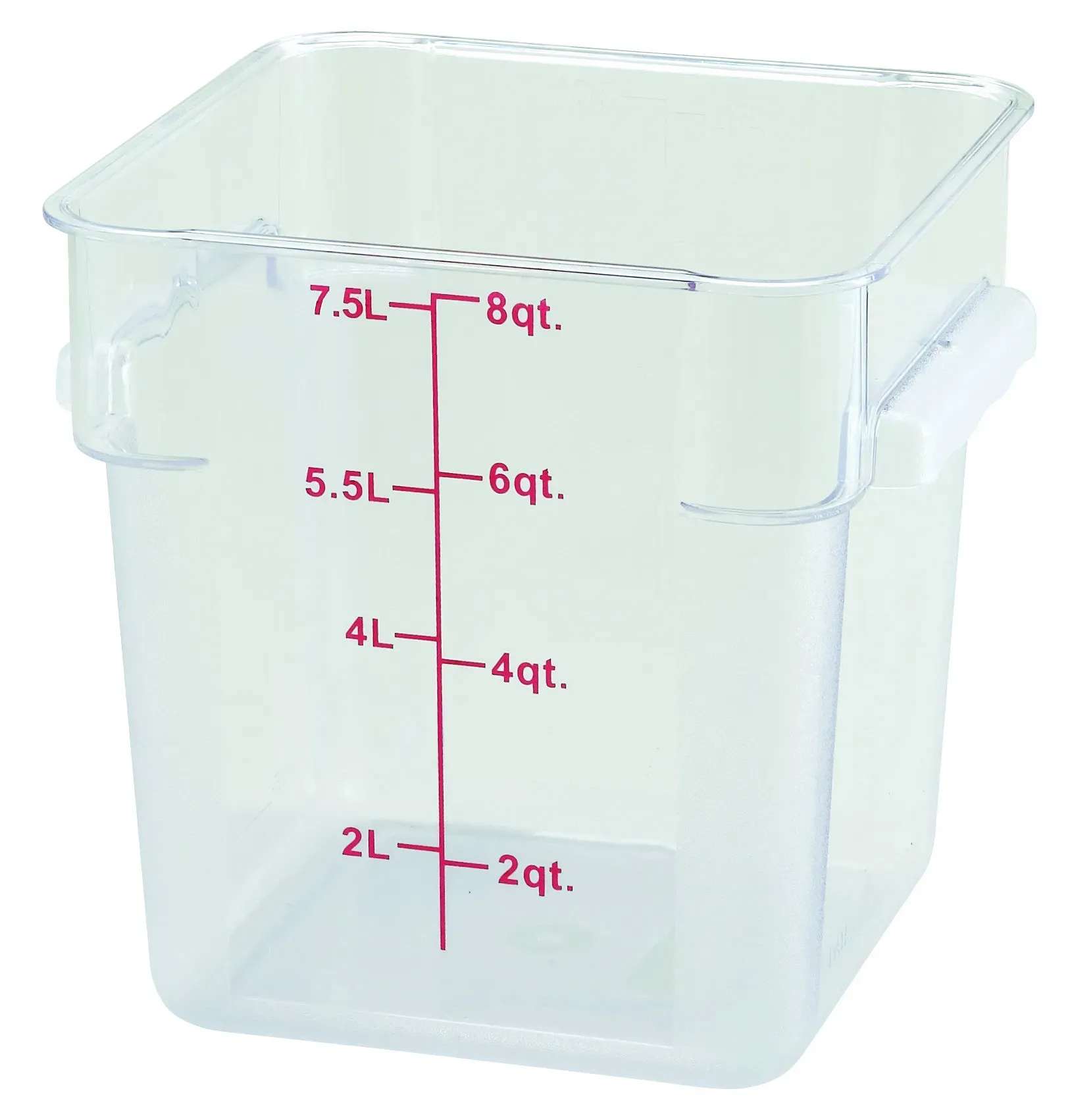 In summary, the Winco 8qt Square Storage Container Clear PC is a must-have for restaurants looking to streamline their kitchen operations. Its robust construction, ample capacity, and space-saving design make it an invaluable tool for maintaining an organized and efficient kitchen.