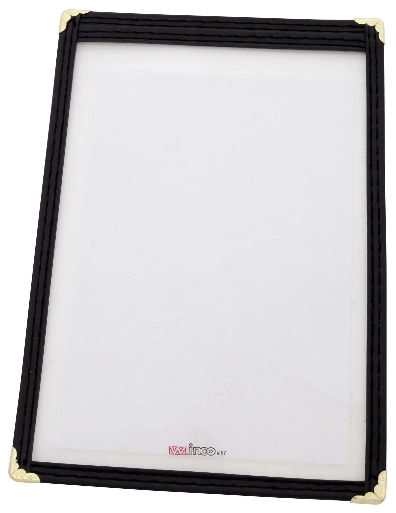 Simplify kitchen tasks with the Winco Menu Cover. Designed to enhance the dining experience, this sleek and durable menu cover is perfect for any restaurant setting. Measuring 6-3/8 x 9-3/8 inches, it is tailored to hold 5-5/8 x 8-1/8 inch paper, making it an ideal fit for your menu inserts.