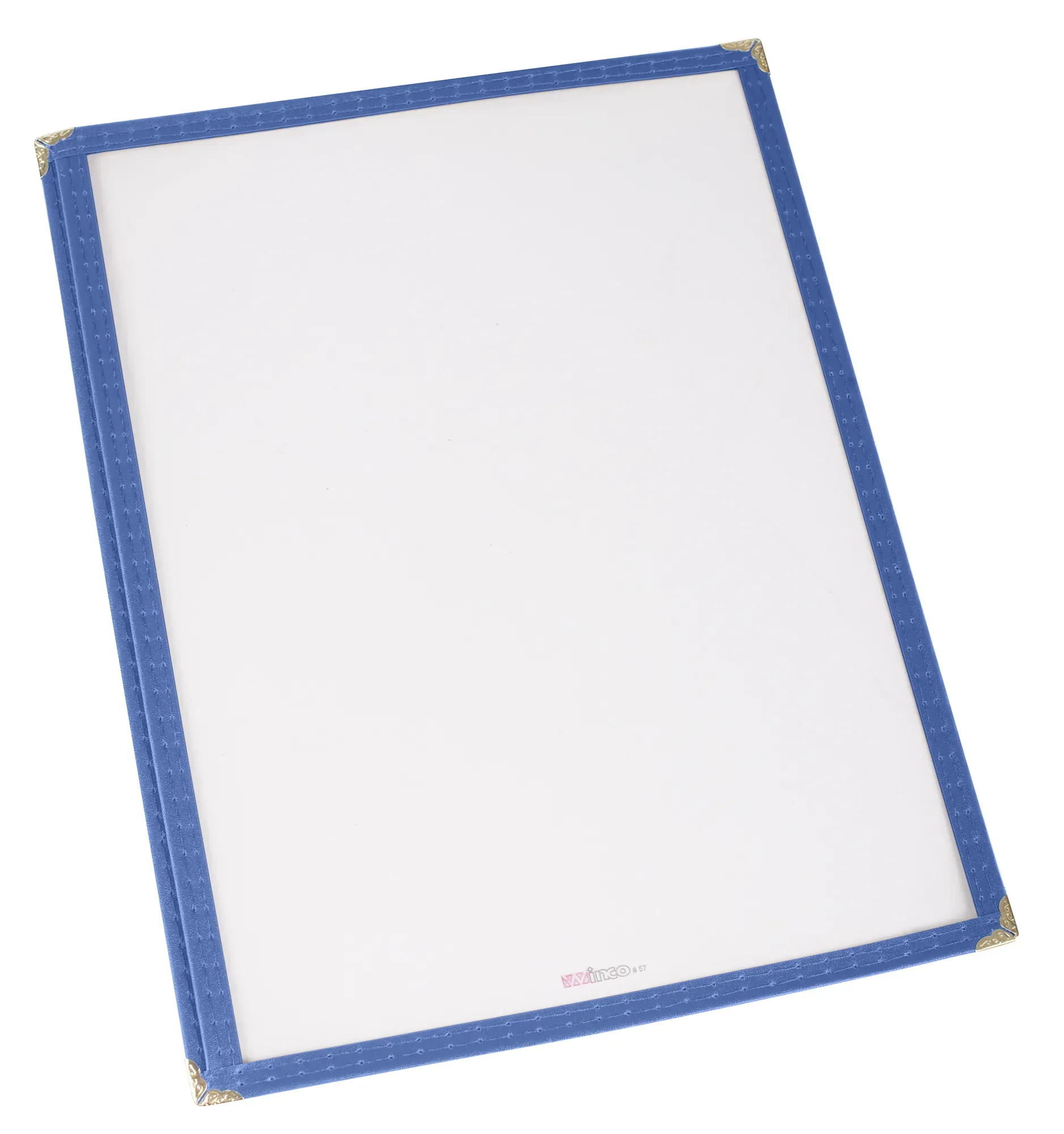 The striking blue color of the Winco Menu Cover adds a touch of sophistication and can easily match or enhance your restaurant's theme. Its practical design allows for quick and easy menu updates, making it an ideal choice for establishments that frequently change their offerings.