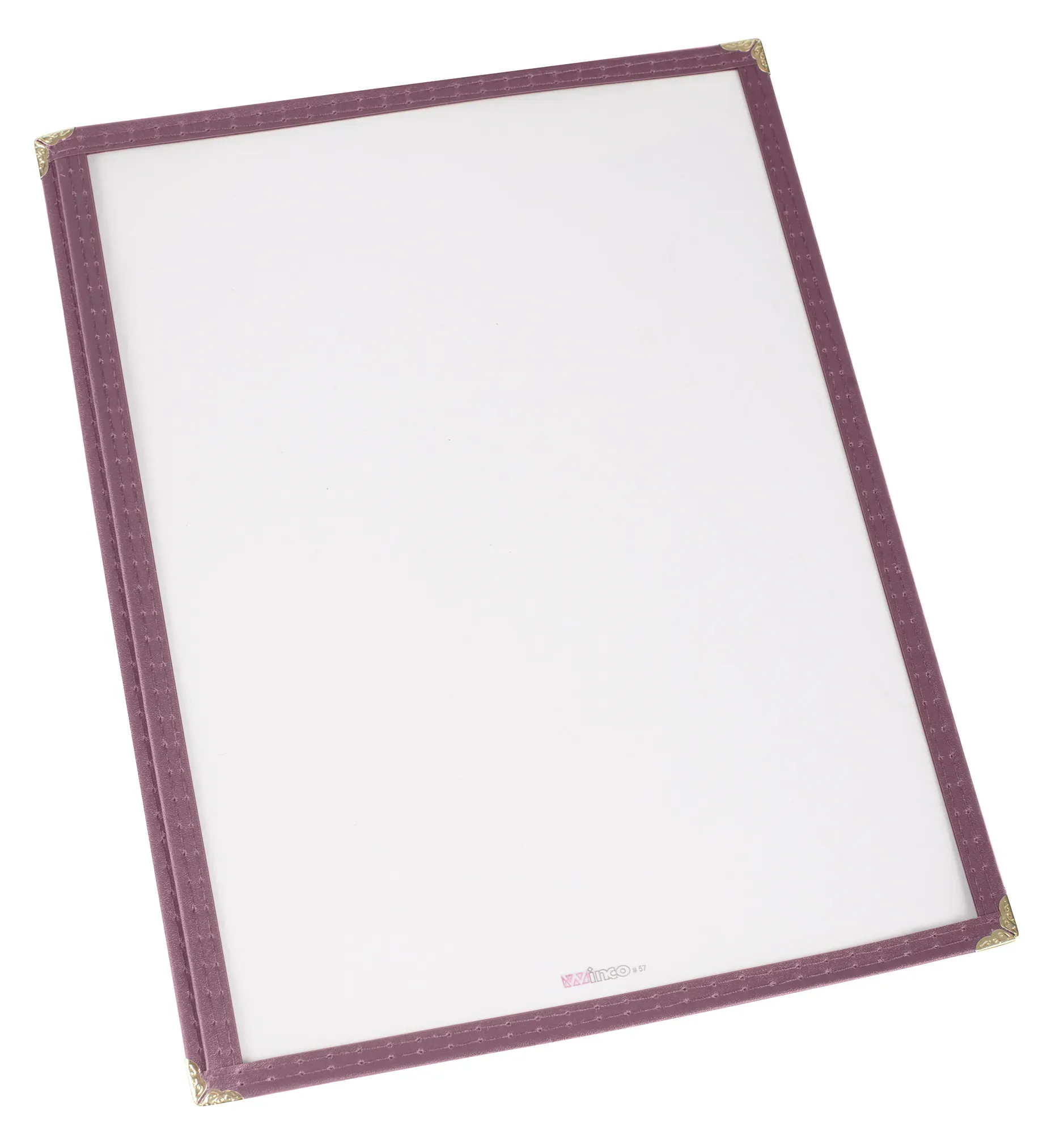 Perfect for both home cooks and professionals, the Winco Menu Cover is an essential addition to any restaurant setting. Designed with precision, this menu cover measures an overall 9-3/8 x 12-1/8 inches, perfectly accommodating 8-1/4 x 11-1/4 inch paper. This ensures your menus are presented in a clean, organized, and professional manner.