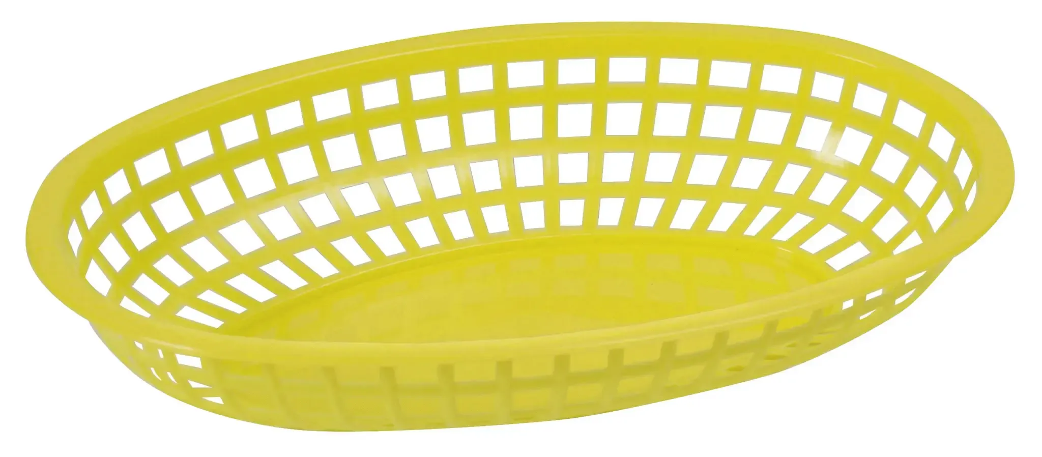 A must-have for any home cook using the Winco Oval Basket, this versatile kitchen essential is designed to meet the rigorous demands of a bustling restaurant environment. Crafted from heavy-duty plastic, this large, oval basket measures 10-14 x 6-34 x 2H, providing ample space for a variety of culinary tasks. Its vibrant yellow color not only adds a pop of brightness to your kitchen but also ensures easy identification and organization.