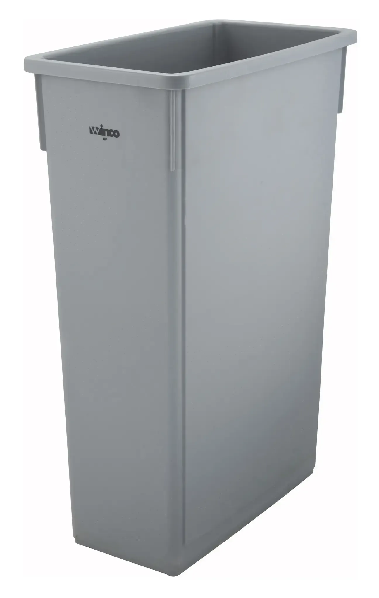 Engineered for excellence using high-density polyethylene (HDPE), the Winco Slender Trash Can is an essential addition to any restaurant setting. With a generous 23-gallon capacity, this trash can is designed to handle high volumes of waste, making it perfect for busy kitchens, dining areas, and restrooms. Its slender design ensures it fits seamlessly into tight spaces, optimizing your restaurant's layout without compromising on capacity. The Winco Slender Trash Can is crafted from durable HDPE, ensuring it withstands the rigors of daily use in a bustling restaurant environment. The gray color offers a sleek, professional appearance that complements any decor, while also being easy to clean and maintain. Please note that the lid is not included, allowing you the flexibility to choose a lid that best suits your specific needs. While the model number PTC-23SG highlights the product's unique specifications, the primary focus remains on its functionality and durability. This trash can is not just a waste receptacle; it is a reliable solution that enhances the efficiency and cleanliness of your restaurant operations. Incorporating the Winco Slender Trash Can into your establishment ensures a cleaner, more organized environment, ultimately contributing to a better dining experience for your customers. Choose the Winco Slender Trash Can for a practical, durable, and aesthetically pleasing waste management solution.