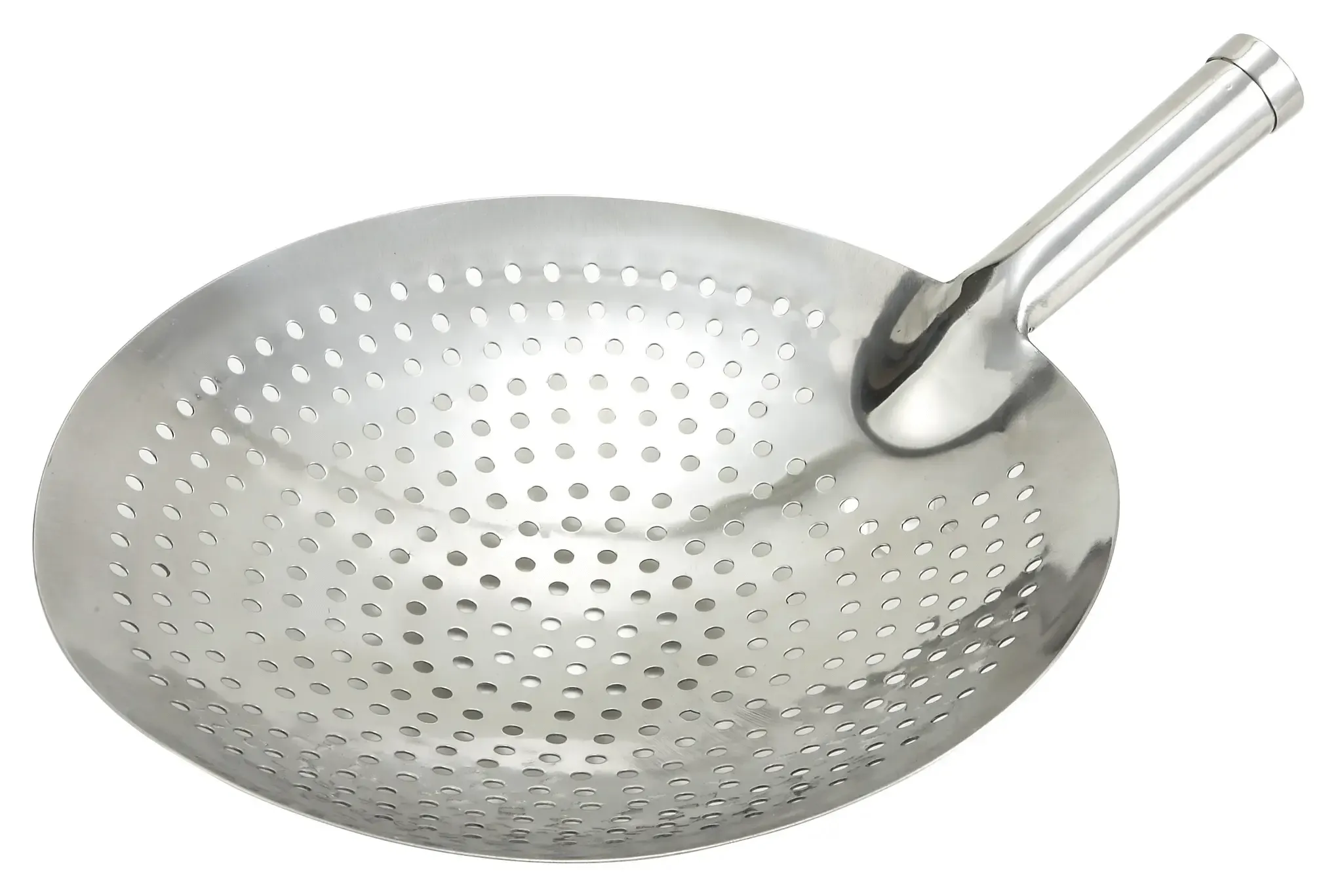 The 12-inch diameter of the skimmer head offers ample surface area, making it suitable for handling large quantities of food at once. This is particularly beneficial in high-volume kitchens where efficiency and speed are paramount. The sturdy handle provides a comfortable grip, ensuring that chefs can maneuver the skimmer with confidence and control.