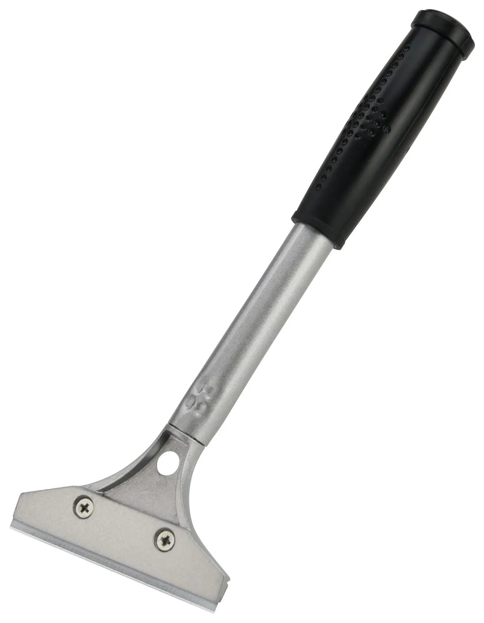 The blade is crafted from durable materials, providing the strength needed to scrape off stubborn residues from grills, griddles, and other cooking surfaces. The 12-inch handle offers an extended reach, allowing for comfortable and efficient use, even in hard-to-reach areas. The handle is equipped with a PVC grip, ensuring a secure and comfortable hold, reducing hand fatigue during prolonged use.