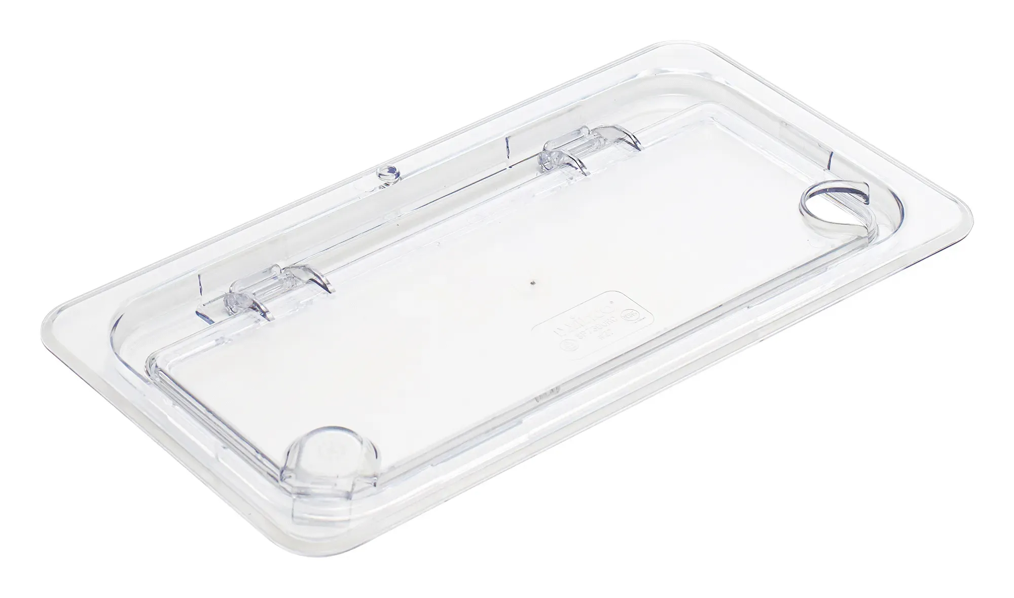 Safely store food, with this polycarbonate hinged lid. Featuring a built-in spoon notch, this lid enables your staff to keep spoons inside the pan during times of storage, further minimizing the risk of cross-contamination
