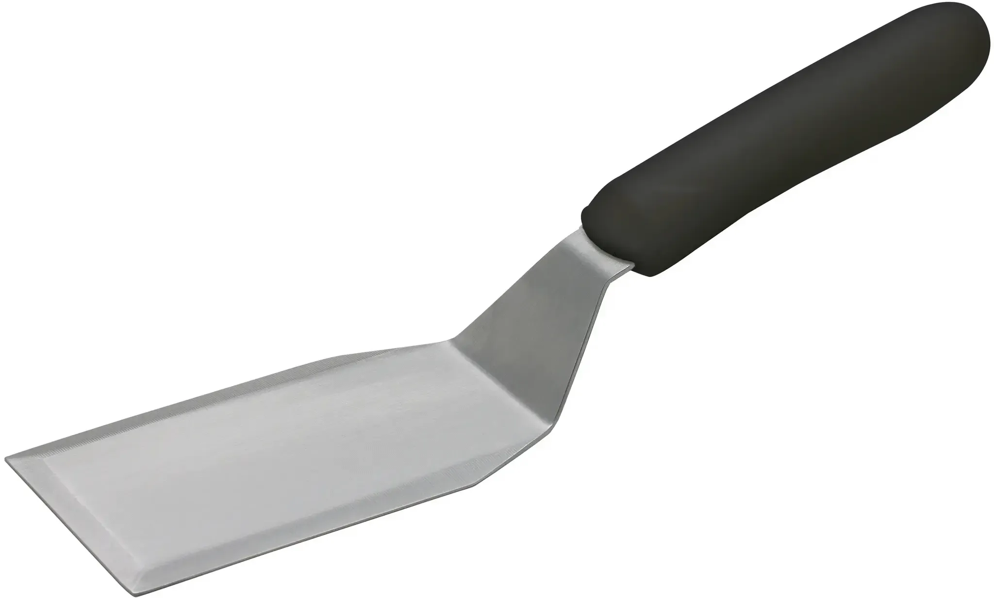 The Offset Hamburger Turner is equipped with a slip-resistant polypropylene black handle, providing a secure and comfortable grip even during the busiest shifts. This ergonomic design minimizes hand fatigue, allowing chefs to maintain precision and efficiency throughout service. The handle's dishwasher-safe feature further simplifies the cleaning process, ensuring that hygiene standards are effortlessly maintained.