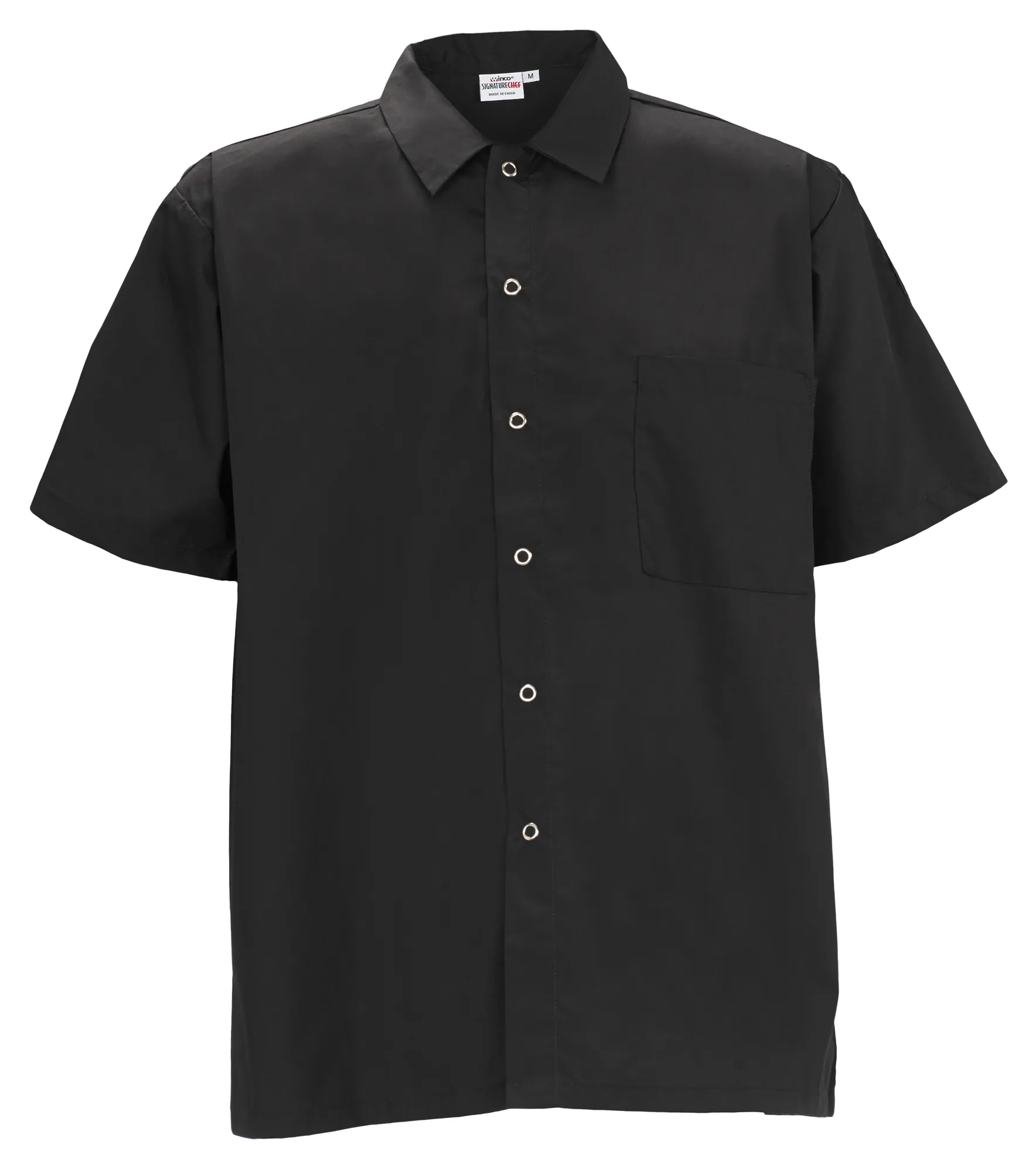 Designed for durability and easy to use with the demands of a bustling kitchen, the Broadway Chef Shirt from Winco is an essential addition to any restaurant's uniform lineup. This short-sleeved chef shirt, model UNF-1KS, is crafted from a high-quality 65/35 poly-cotton blend, ensuring both comfort and resilience during long shifts.