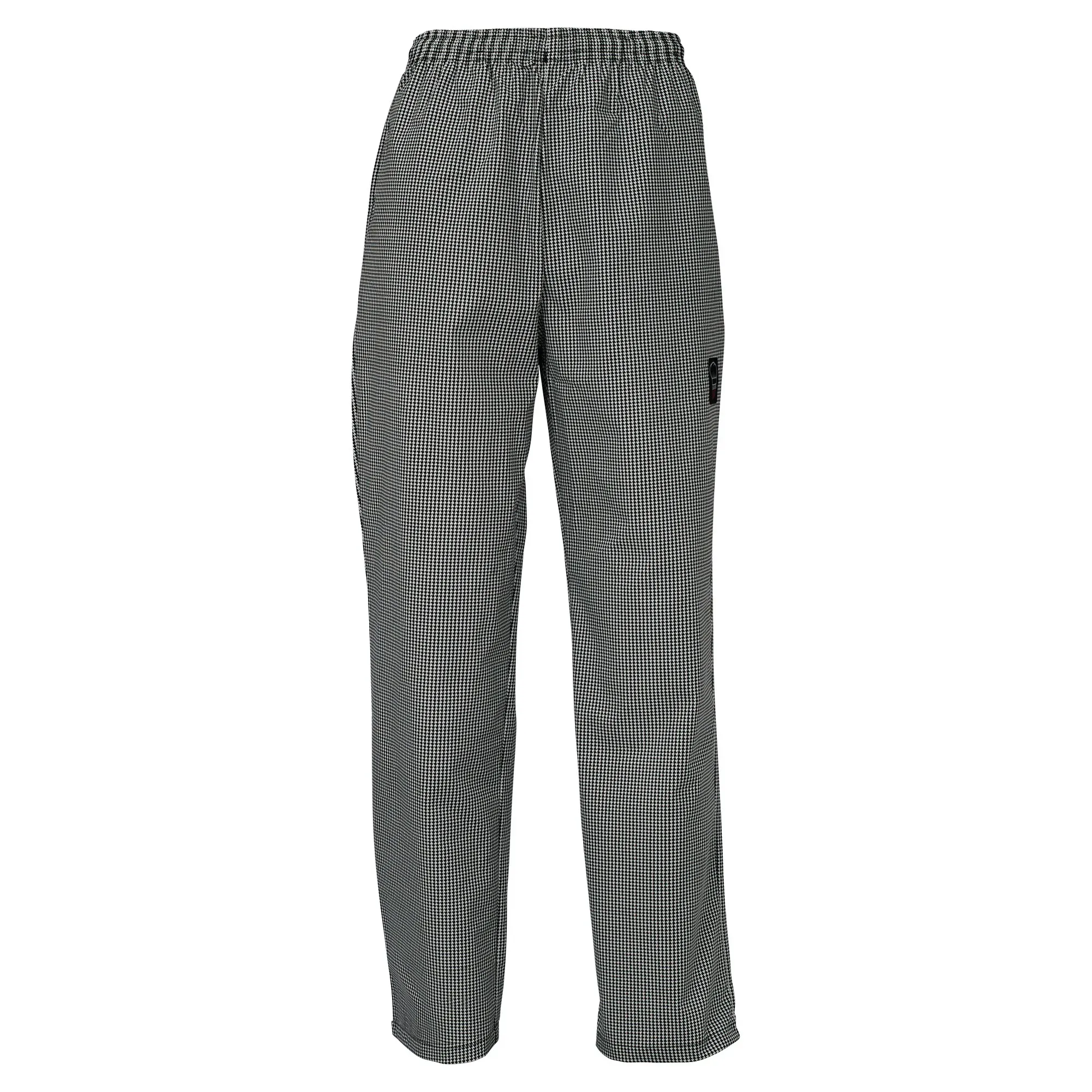 Elevate service with the Newbury Chef Pants from Winco, designed to provide ultimate comfort and functionality in a bustling restaurant environment. These chef pants, model UNF-4KS, are crafted with a relaxed fit to ensure ease of movement during long shifts. The elastic waistband with a drawstring offers a customizable fit, allowing chefs to adjust for maximum comfort throughout the day.