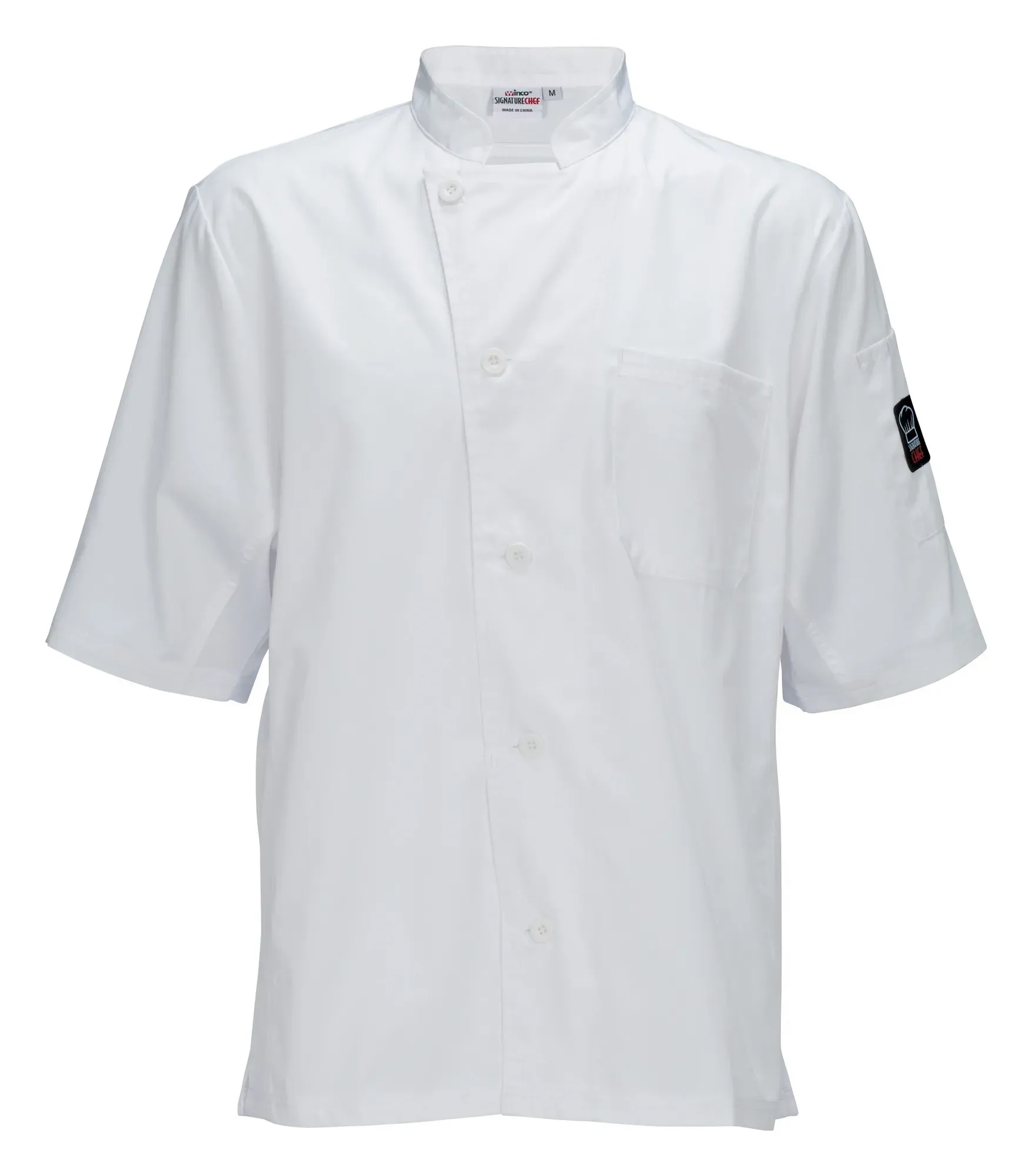 The Signature Chef white color of the Broadway Ventilated Shirt exudes professionalism and cleanliness, a must-have for any kitchen staff. Available in medium size, this shirt is perfect for chefs who value both style and practicality.