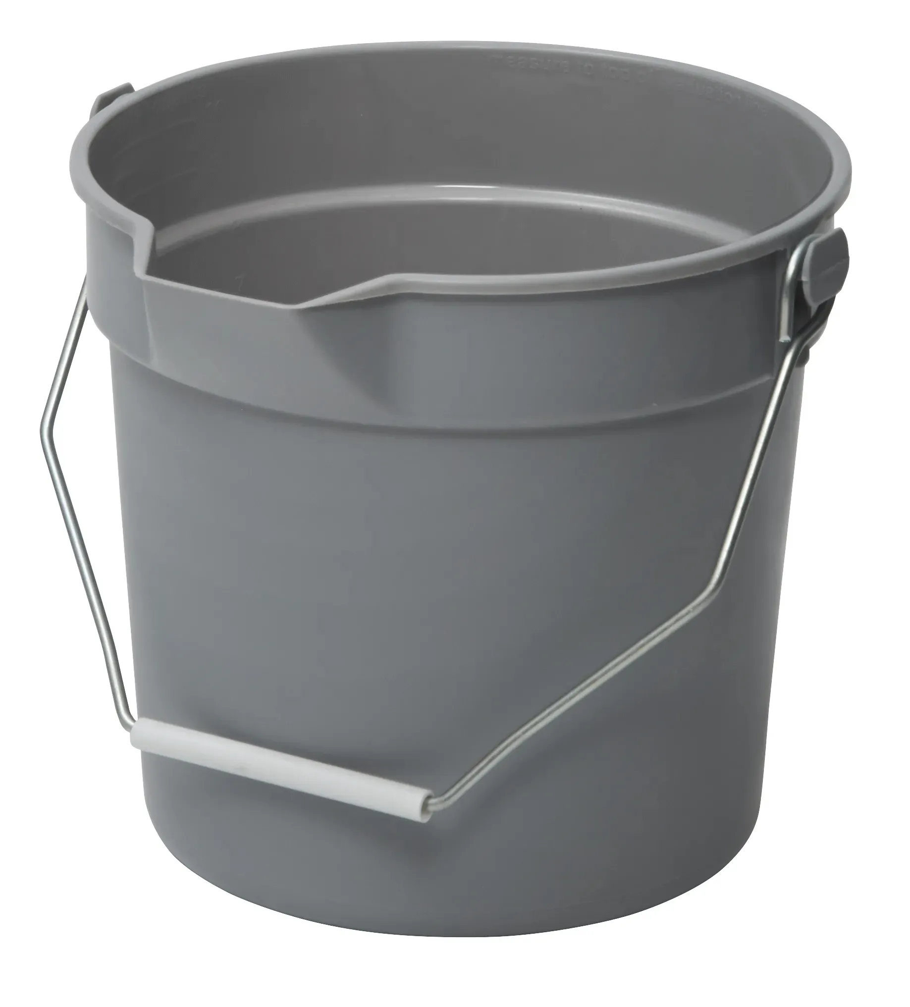 The molded graduations on the pail provide precise measurements, allowing for accurate portioning and mixing of ingredients. This feature is particularly useful for maintaining consistency in recipes, which is crucial for delivering high-quality dishes to your customers. The pail is made from durable polypropylene (PP) in a sleek gray color, ensuring it can withstand the rigors of daily use while maintaining a professional appearance.