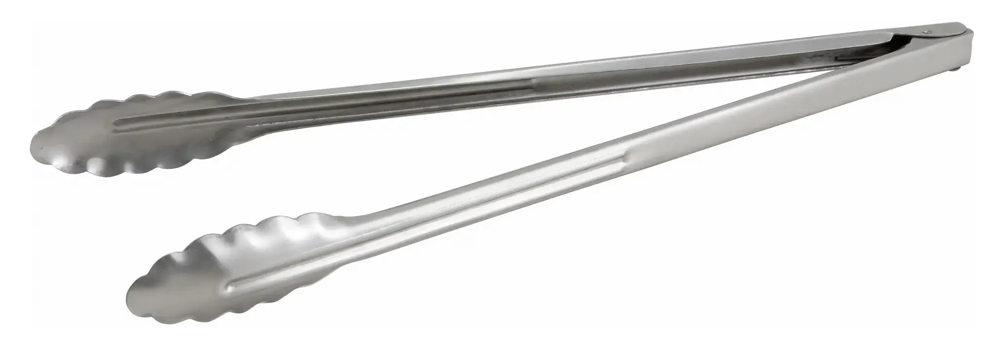 Constructed from heavy-weight 0.9 millimeter stainless steel, these tongs are built to withstand the rigors of a busy kitchen environment. The scalloped edge design provides a secure grip on food items, allowing for precise control whether you're flipping steaks on the grill or serving delicate pastries. The robust construction ensures that these tongs will maintain their shape and functionality even after repeated use.